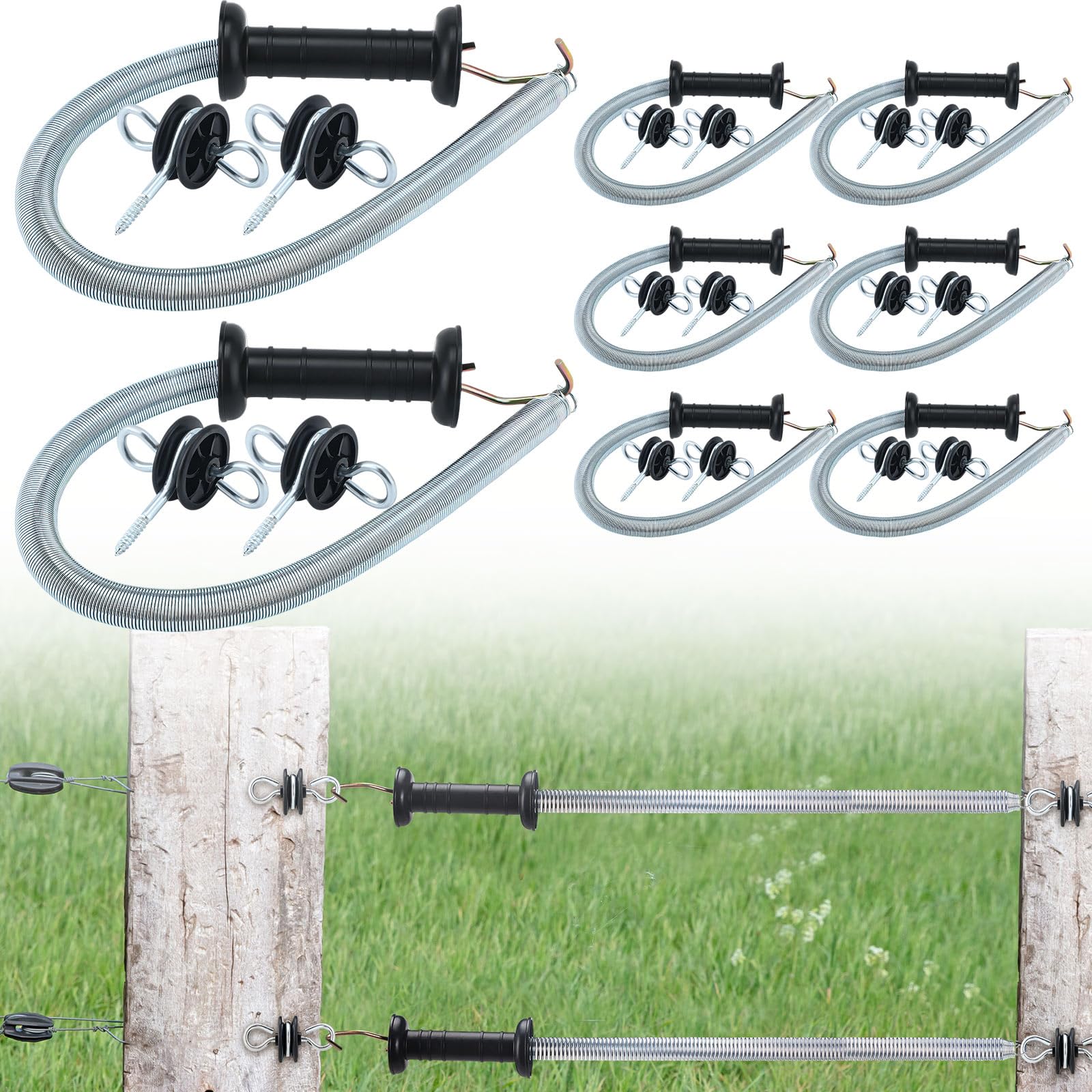 Easy to Install: our electric fence gate handle kit is designed to be convenience, just directly nail the corner end screw in ring insulator into the wooden stake, and the electric spring fence can be directly installed on the two way anchor insulator, spring can extends to 16 feet; It is convenient to open and close the door