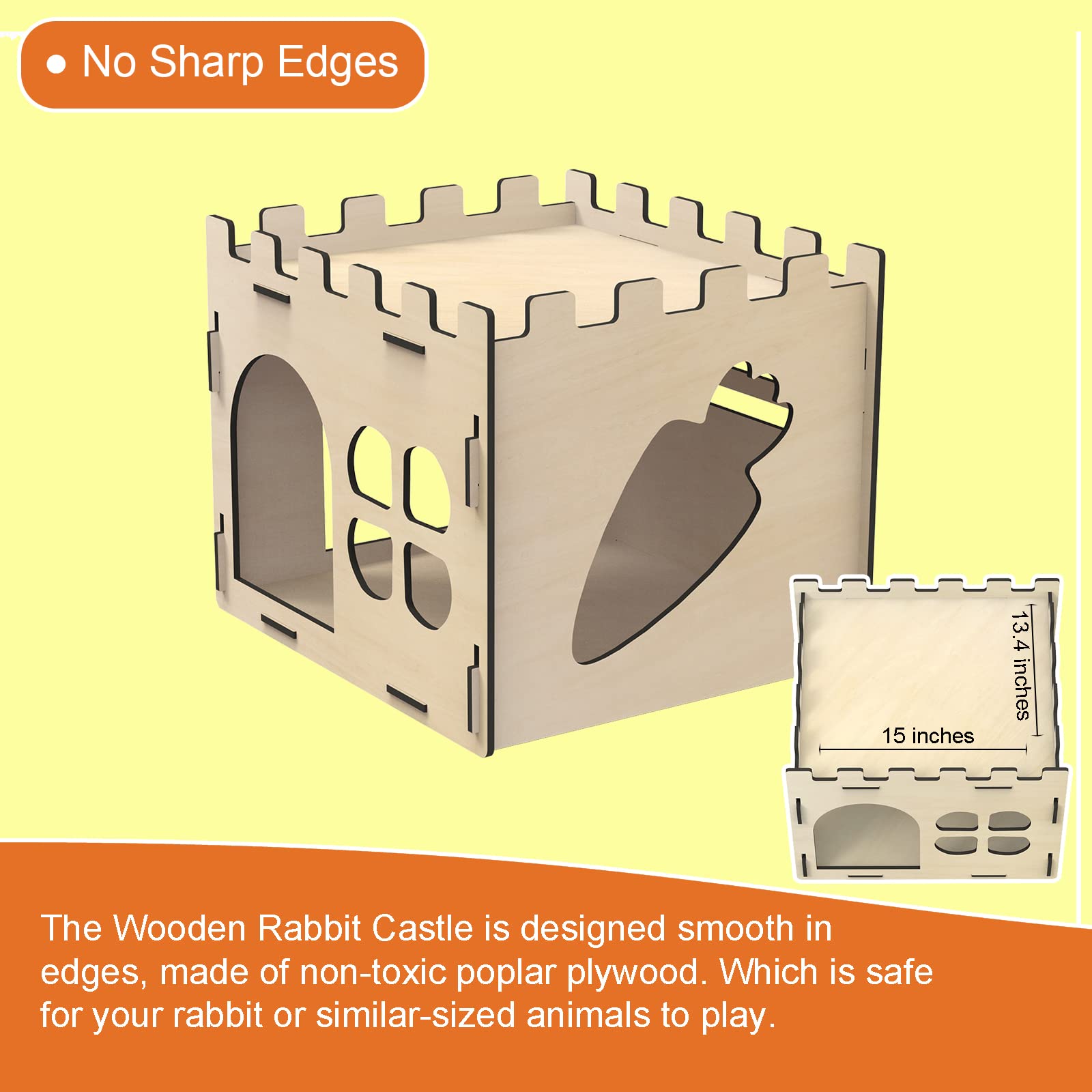 【Easy to Use】The design of the Wooden Rabbit Castle is easy to assemble without tools, making it simple to set up and detach. Its portability allows you to move it around your home with ease.