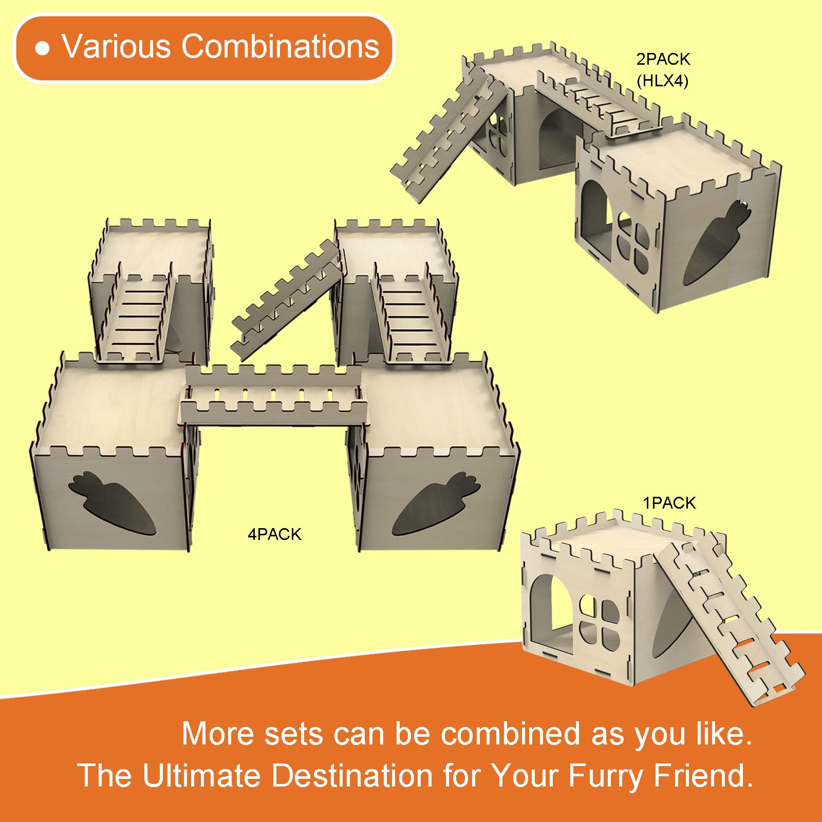 【Random Combinations】The ramp of the Wooden Rabbit Castle provides a multifunctional feature, allowing for various combinations. You can choose to combine one, two, or four sets as desired.