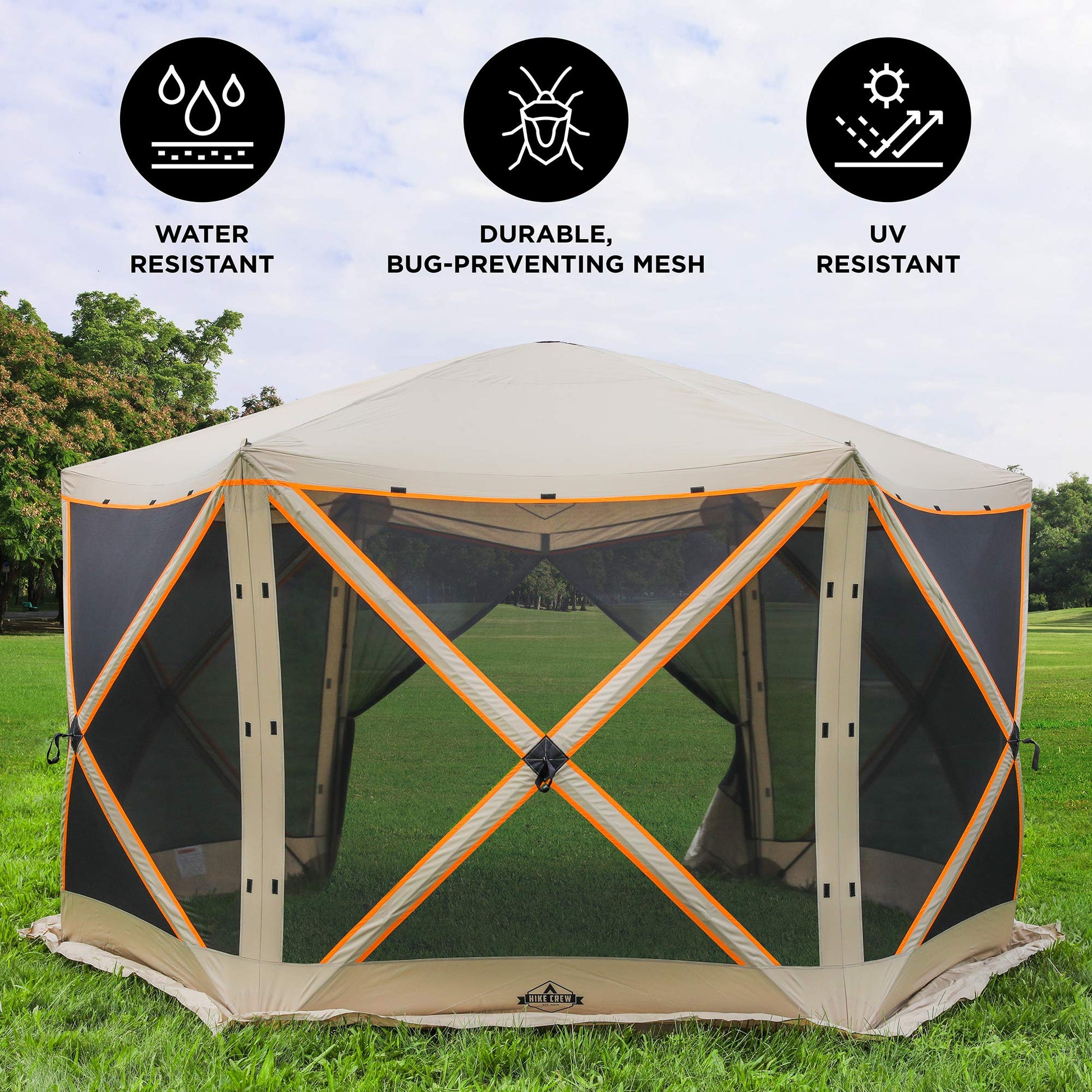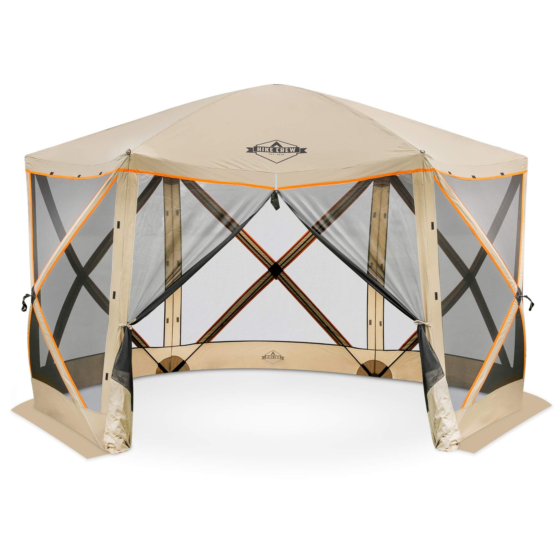 Hike Crew 6-Panel Pop-Up Screen House Gazebo 140x140 Inch – Instant Setup 6-Sided Hub Tent UV Resistant (SPF 50+) Fits 9 People Heavy Duty 210D Material – Includes Carry Bag & Ground Stakes