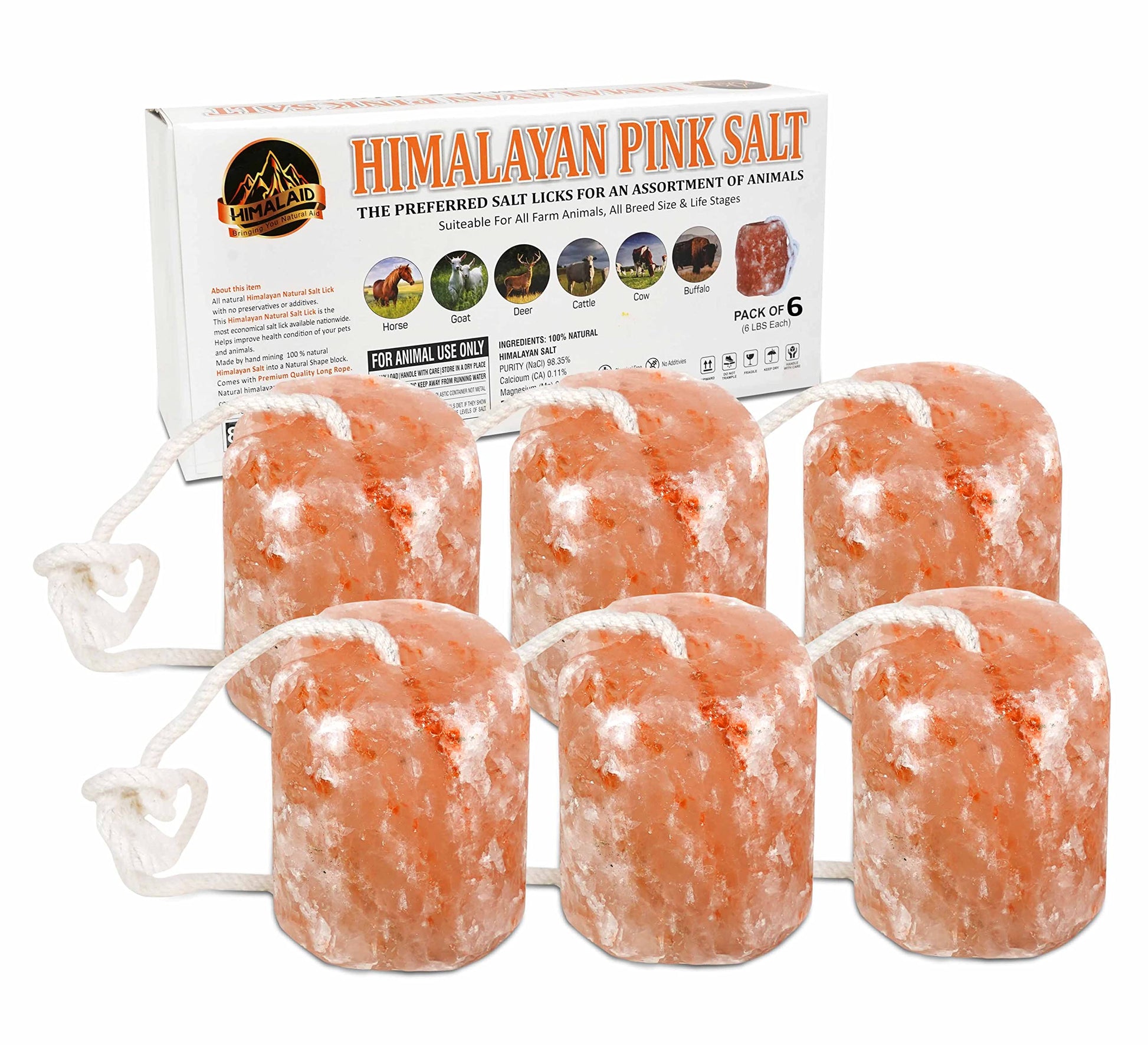 Himalaid Himalayan Pink Salt Lick (6 LBS Pack of 6) - 100% Pure & Natural Feed Salt Block | Natural Minerals and Trace Elements, for Livestock and Wildlife Animals