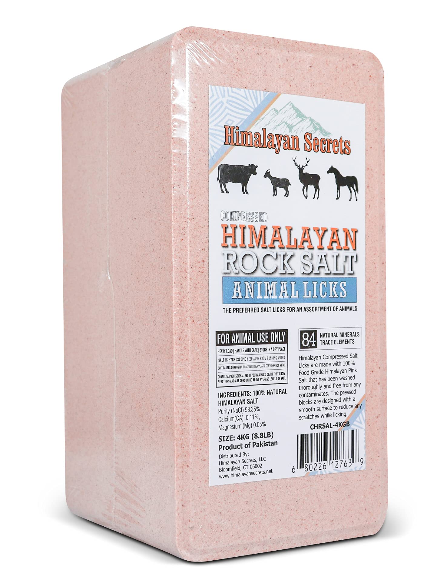 Himalayan Secrets 8.8LB (4KG) Compressed Pink Himalayan Salt Animal Lick Brick for Livestock and Wildlife - 100% Pure & Natural Feed Salt - 84 Natural Minerals and Trace Elements