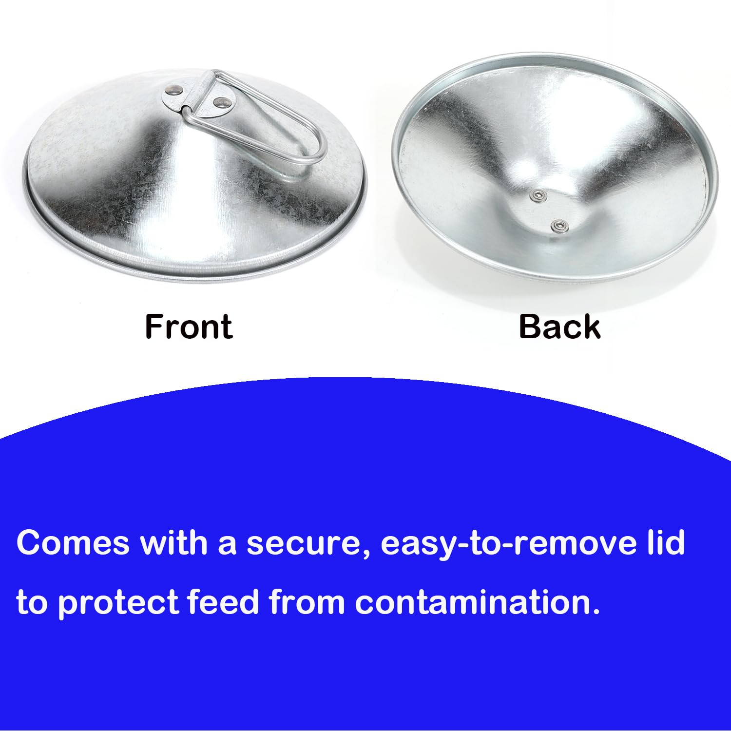Versatile Design: Suitable for both indoor and outdoor use, this galvanized poultry feeder is perfect for coops, barns, and backyards. Its sturdy design prevents tipping and spilling, keeping the feeding area clean.