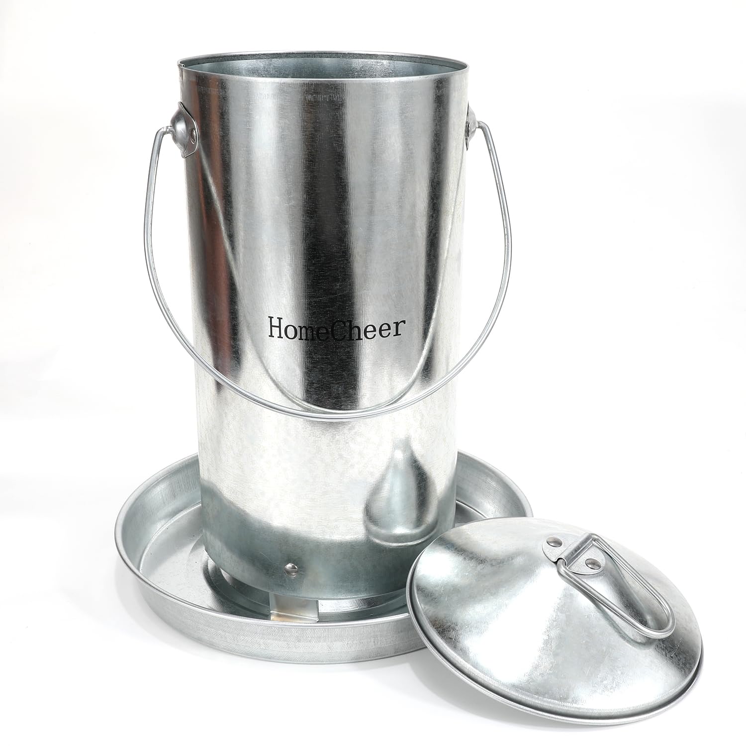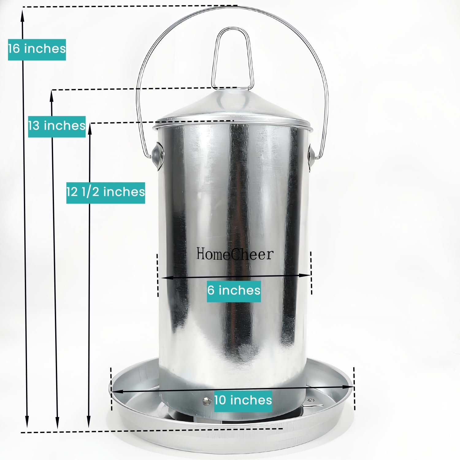 HomeCheer Galvanized Chicken Feeder with Lid - 9 Pounds Capacity - Durable and Rust-Resistant Poultry Feeder for Chickens, Ducks, and Other Poultry HC122 (9 lb)
