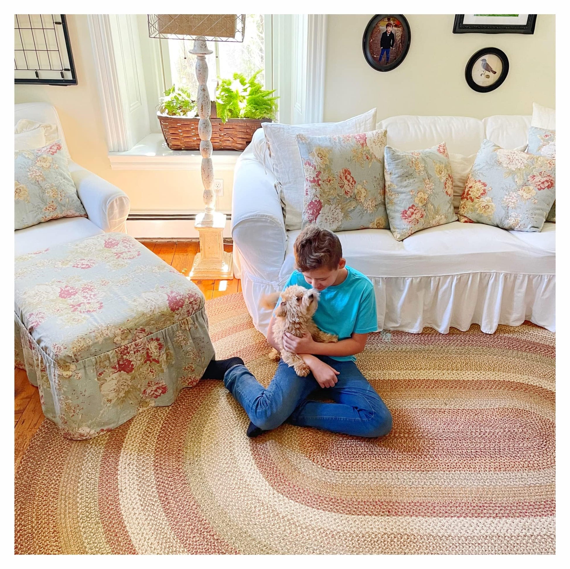 Brown Braided 5X8 Area Rug: This is a warm and inviting color combination of neutral beige and tan tones, accented with pops of vibrant red, fresh sage, and natural green. The braided pattern will tie in all your room’s colors making it look beautiful. Our family has been making rugs since 1980 and you are buying straight from an experienced rug maker. This brown braided rug will make your room look amazing.