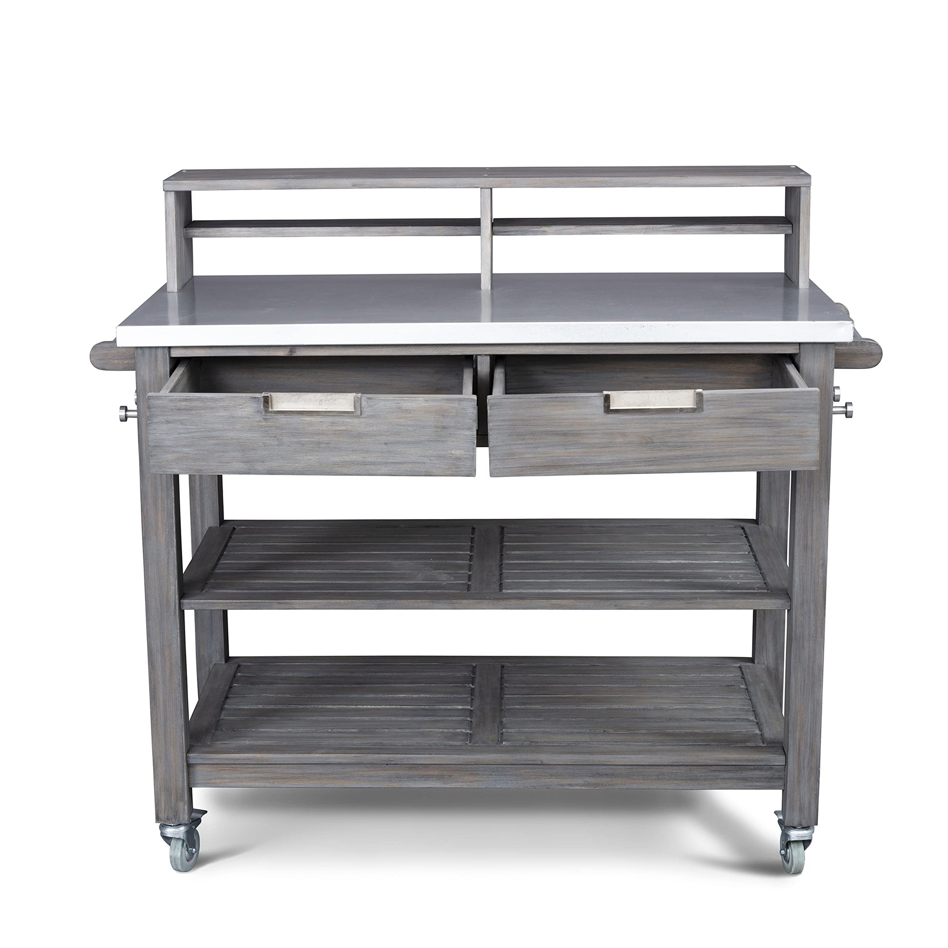 • Two drawers, two slatted shelves and an upper hutch are convenient places to stow gloves and garden tools.