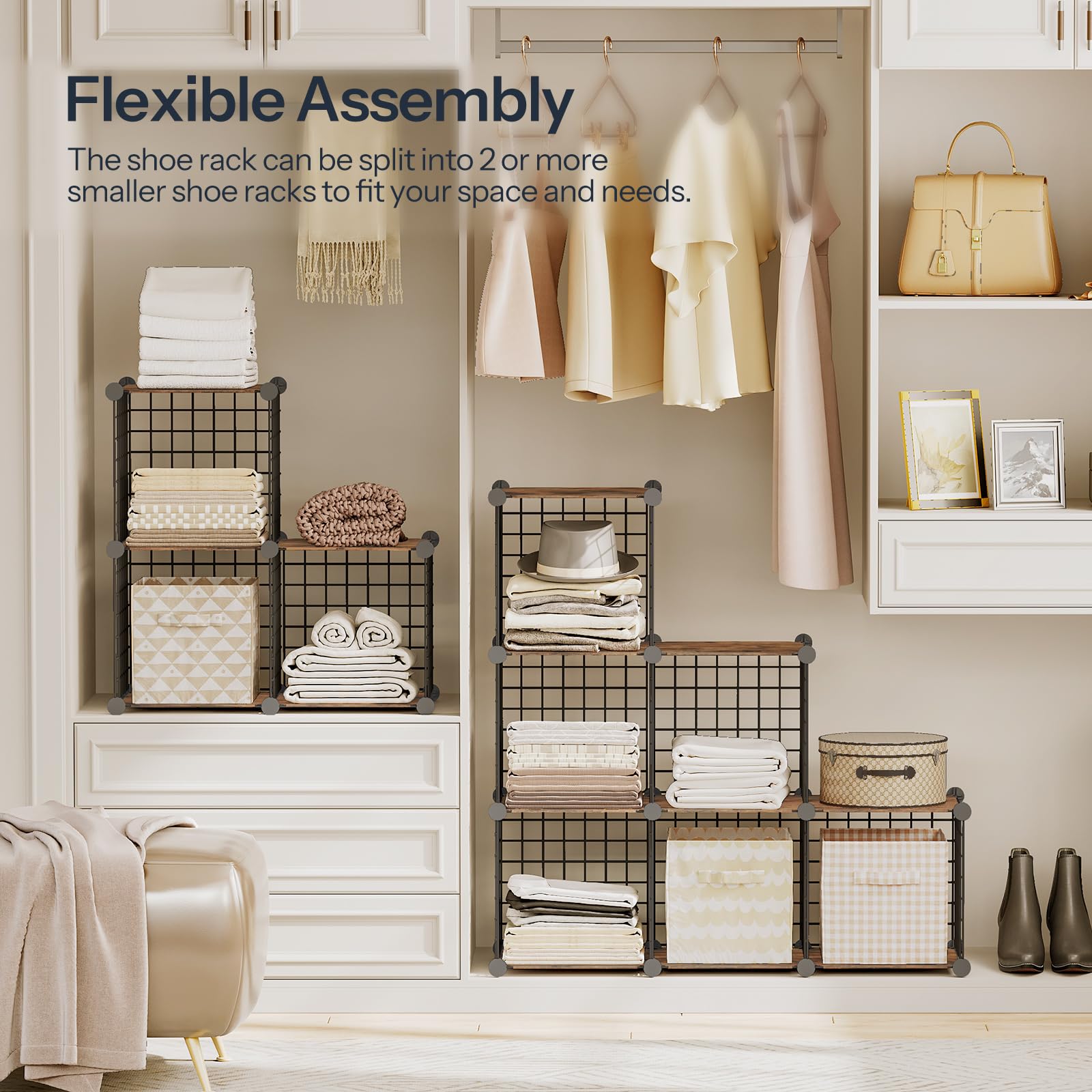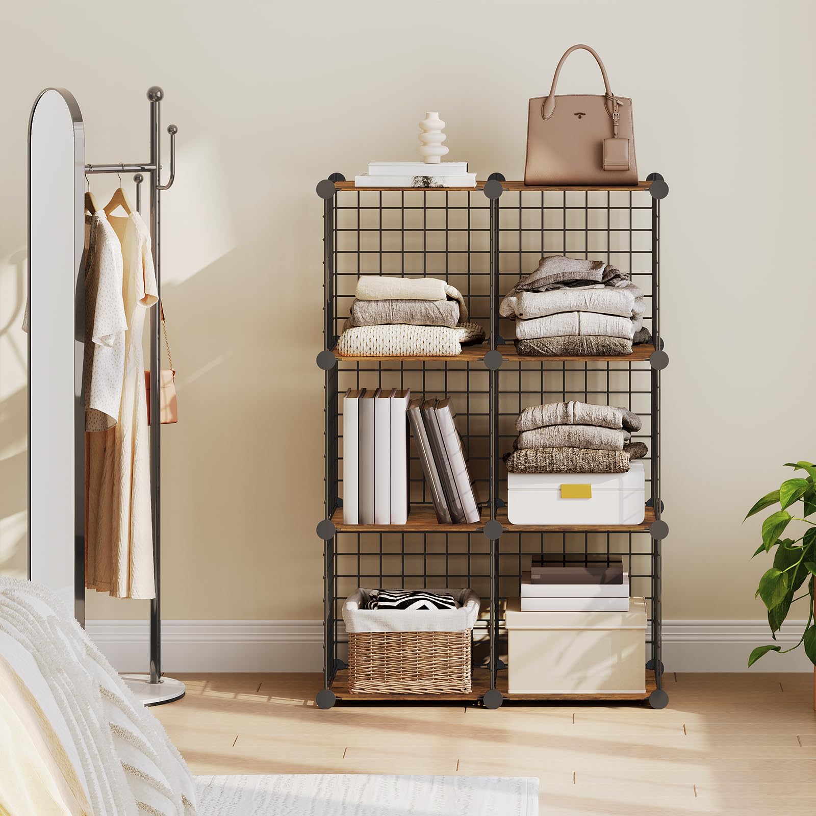 Stable Structure: The cube storage organizer is composed of sturdy metal wire panels and quality ABS resin connectors. The metal wire shelf is stable to hold more things, and the durable ABS resin connectors secure the whole structure firmly