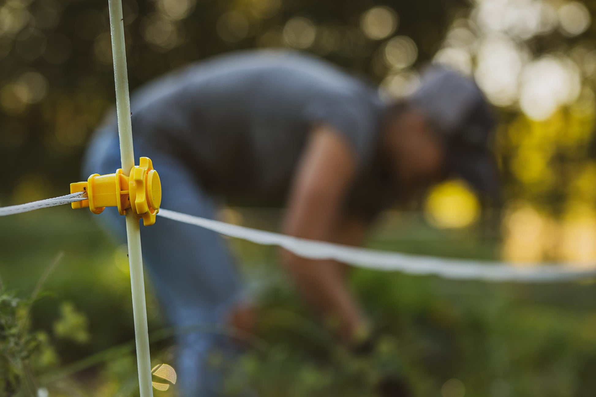 EASE OF USE: Stored on a roll, it can easily be unwound around the perimeter of a fence and attached to poles using corner or in line insulators