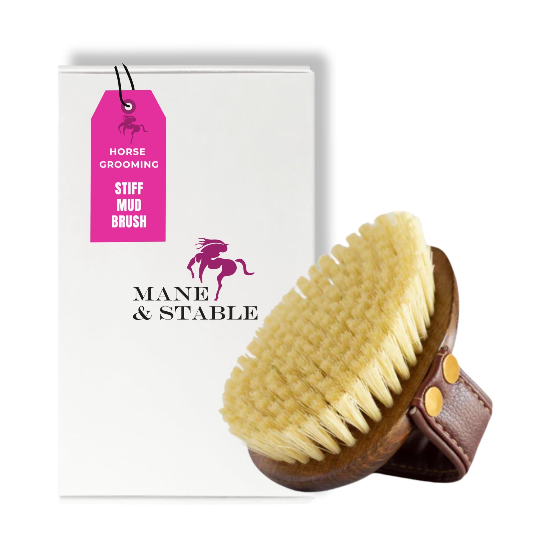 - Stiff Sisal Bristles for Tough Mud – Effectively removes dirt from fetlocks, hocks, and heels without irritating sensitive areas or fine summer coats.