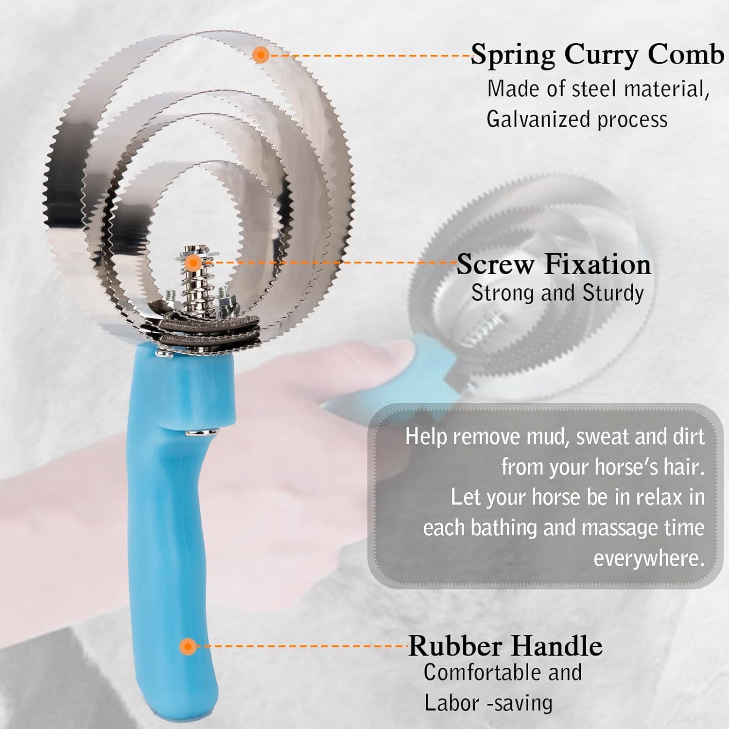 Premium Horse Cleaning Kit: Designed for horse owners and enthusiasts, this horse grooming kit ensures your horse stays clean, healthy, and beautiful. Our brushes effectively remove mud, sweat, and dirt while providing a relaxing massage experience for your horse. From head to tail, and even hooves, this horse brush kit covers all your grooming needs, keep your horse healthy, clean, and comfortable year-round