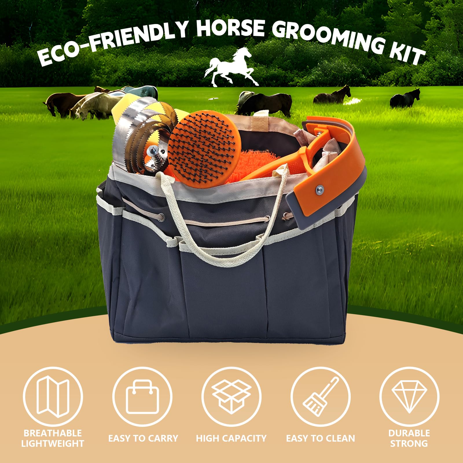 【Convenient Storage and Carrying】The horse grooming bag can easily store and classify your horse grooming accessories.Whether it is used in the tack room or carried out, it can bring you a great horse cleaning experience.