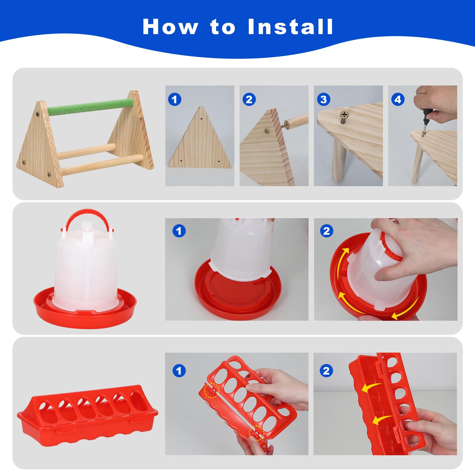 【6-In-1 Chick brooder kit】Introducing our all-in-one chick brooder designed to cater to your needs for raising baby chicks. This complete package includes 1 pop up chick pen, 1 chicken waterer, 2 chicken feeders, 1 sturdy chicken perch, and 1 cozy nesting pad. With everything you need, your chicks will be nourished, safe, and comfortable from day one. Experience the joy of nurturing these little ones and watch them thrive in a cozy, welcoming environmen