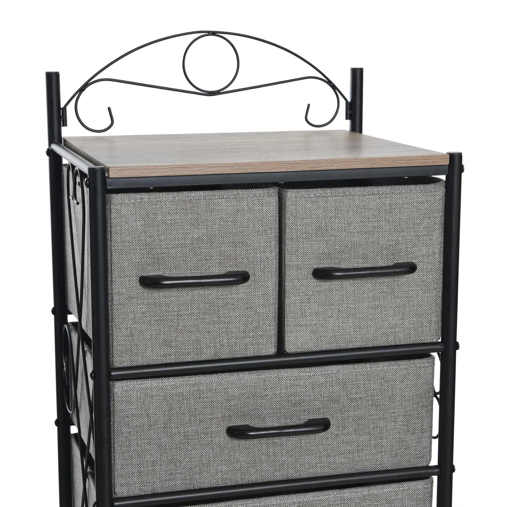 Quality Materials and Construction: Durable steel legs and frame paired with high quality engineered wood finished in scratch resistent wood grain laminate, cloth drawers, and plastic handles.