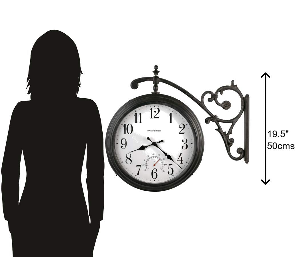 Howard Miller Luis Double-Sided Wall Clock – Indoor Outdoor Analog Clock, Battery Operated Decorative Wall Clock Aesthetic Home Style Clock for Room Decor, Living Room, Office Wall Decor
