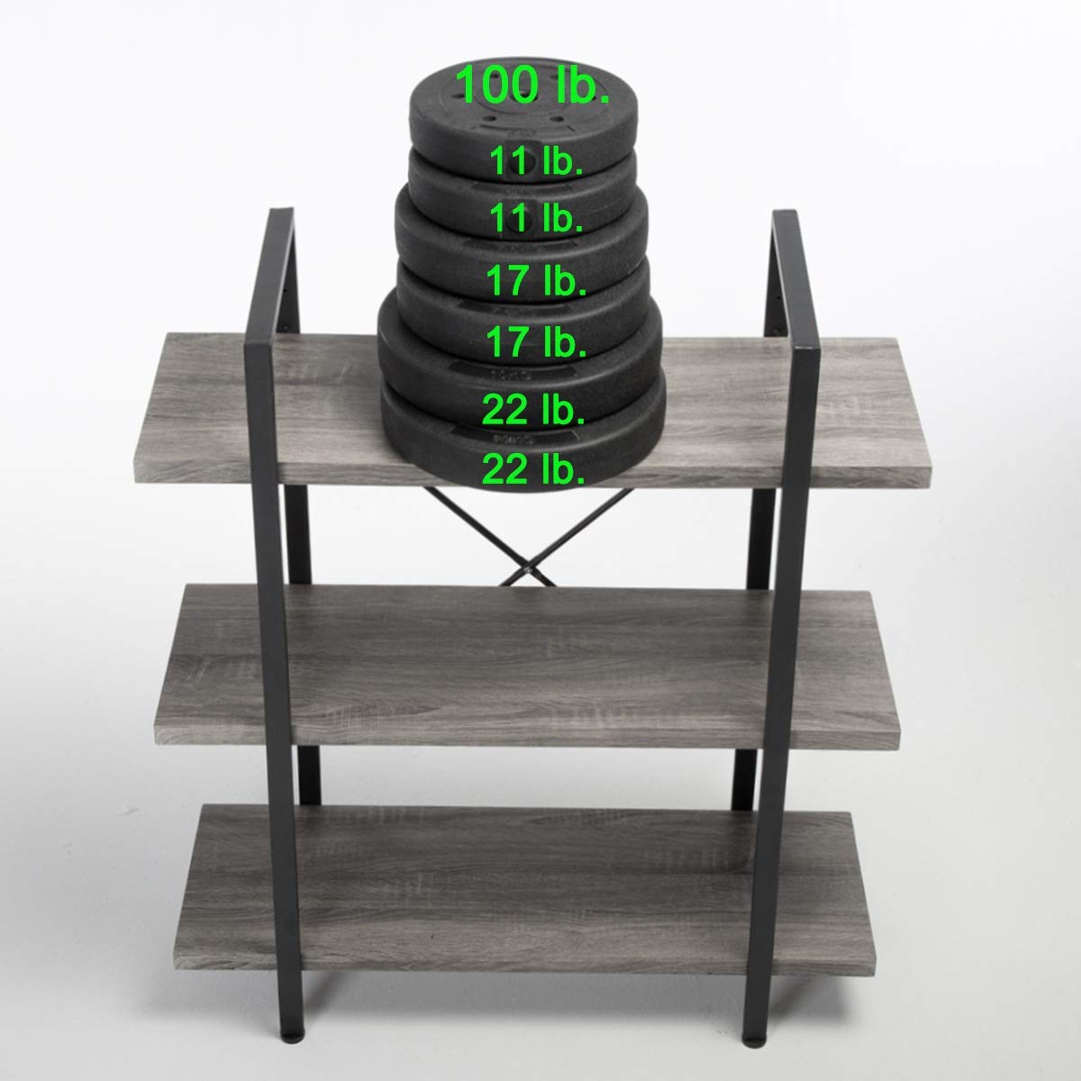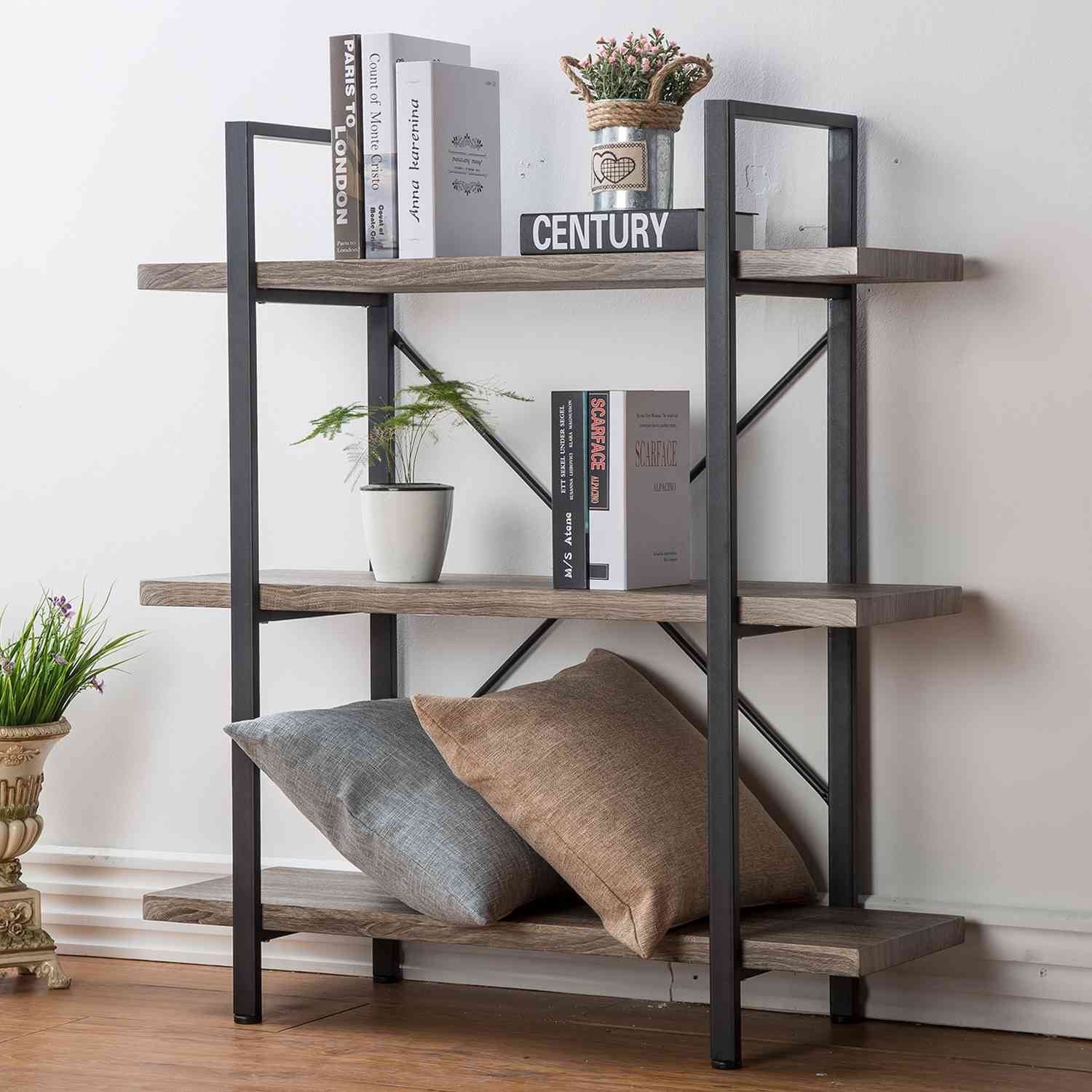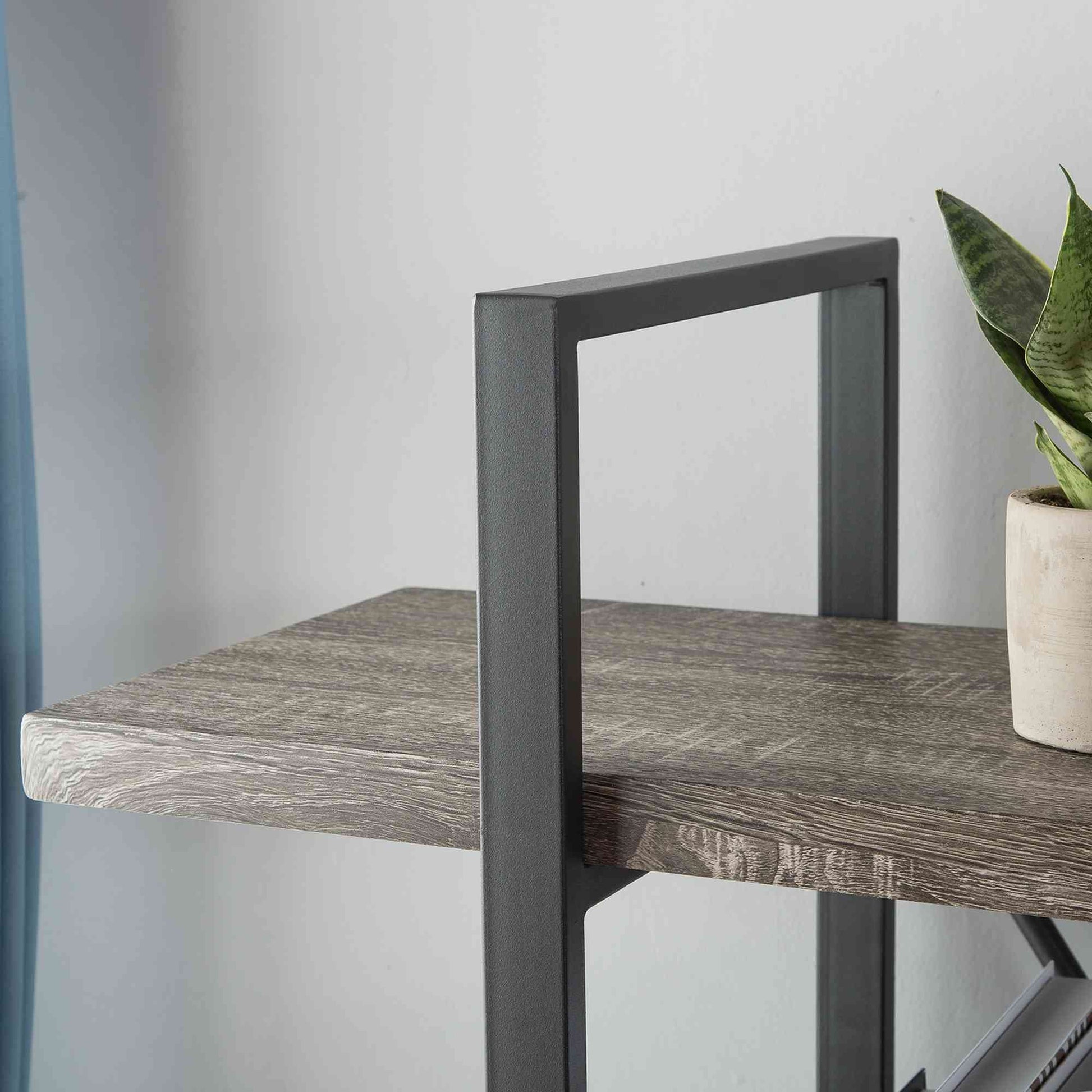 Take Home Design to New Heights: Artfully crafted of wood grain and metal, this elegantly rustic grey industrial 3 tier bookcase takes your home office design to new heights
