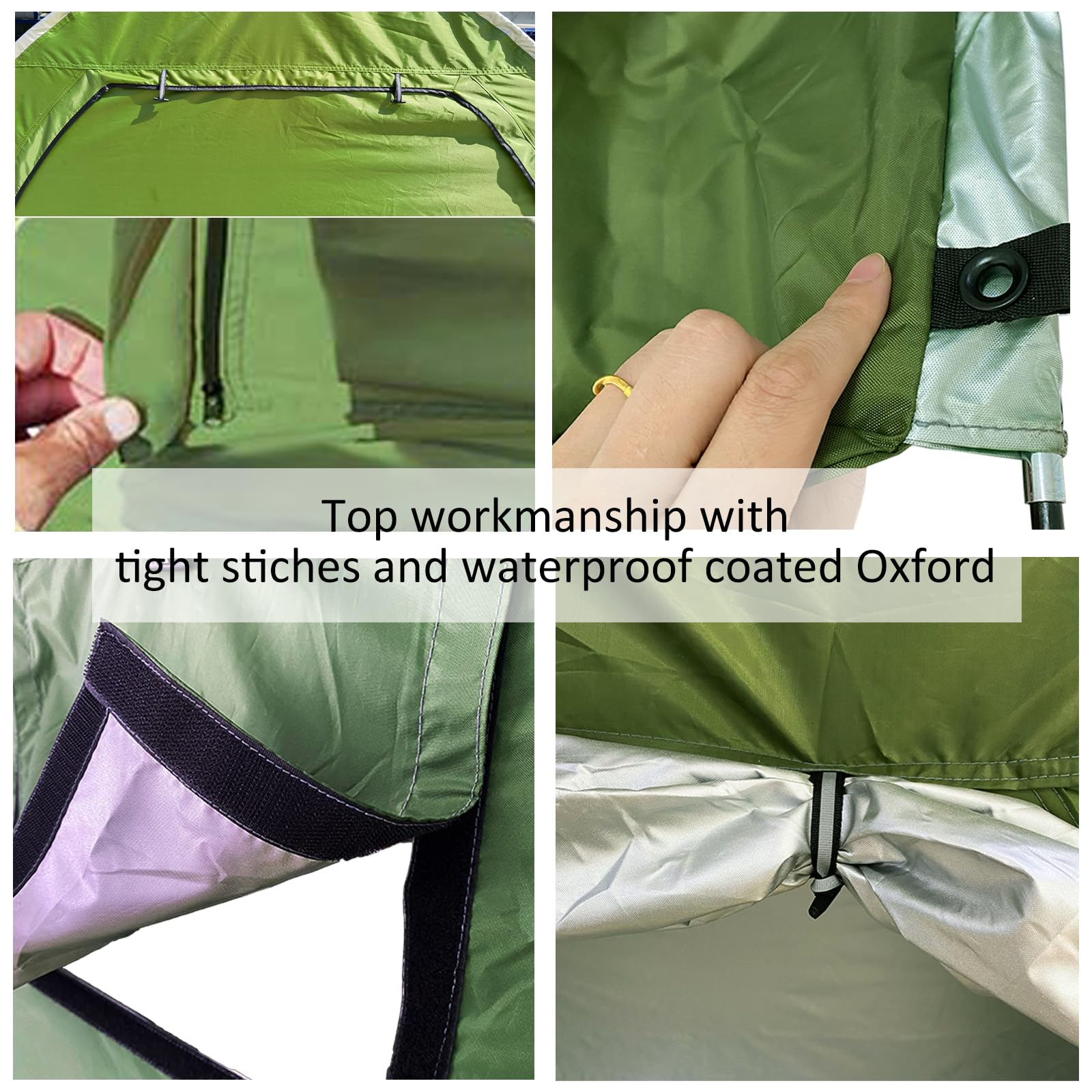 【Quick Setup】 Set up your bike tent in just minutes with the help of two people. No complex assembly required – simply insert the fiberglass poles and stake the tent.
