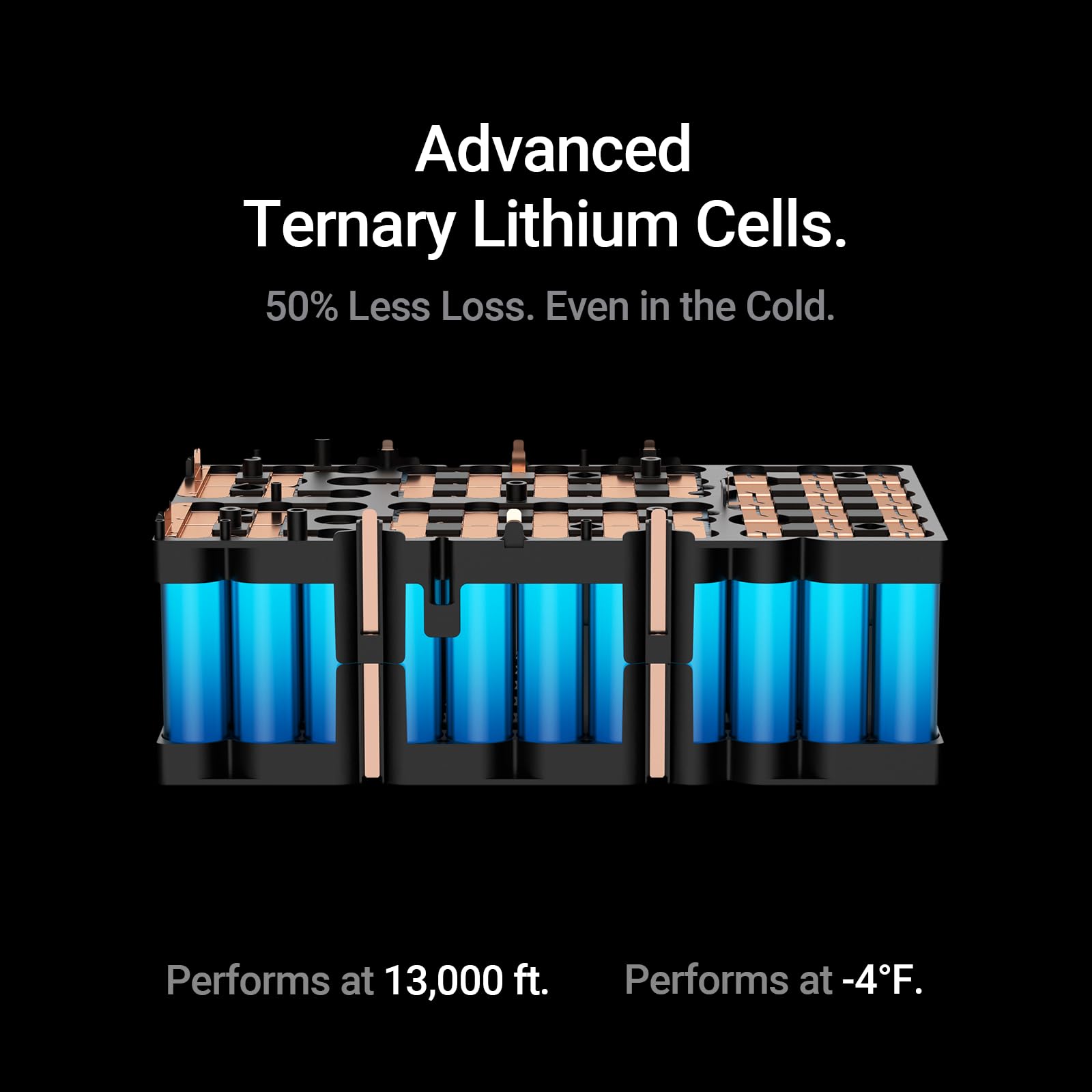 [Power Through the Cold] Built with EV-grade ternary lithium cells, this portable power bank delivers a stable 576Wh output—even at -4°F or 13,000 ft.