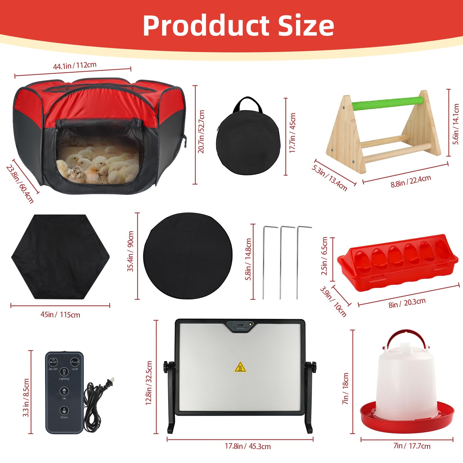 [Chicken Brooder Size and Material] - Measures 44.88 × 44.88 inches(114 × 114 cm). Features a stylish color-blocked design. Spacious interior provides ample room for chicks. Constructed from durable ABS plastic (Acrylonitrile Butadiene Styrene) for long-lasting use. Breathable mesh fabric on the top and sides ensures proper air circulation for your pets' comfort