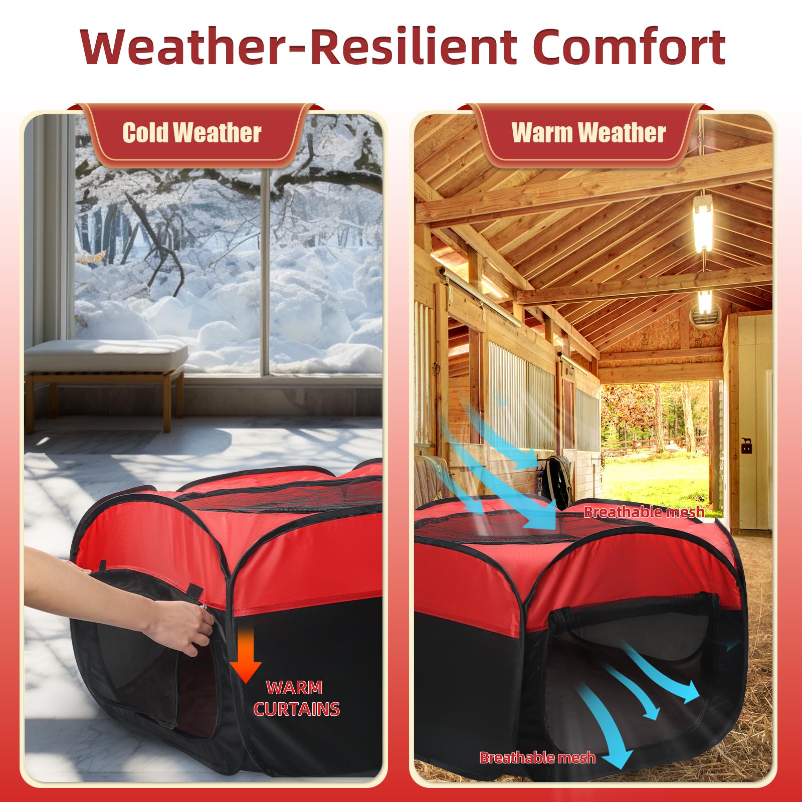 [Weather-Resilient Comfort] - The insulated curtains and top cover provide excellent winter protection, keeping your chicks warm in cold weather. During warmer months, simply open the breathable mesh panels for optimal airflow - maintaining a cool, comfortable summer environment while securely containing your chicks.No matter the season, this coop heater brooder ensures your chicks stay safe, content, and perfectly comfortable in all weather conditions!