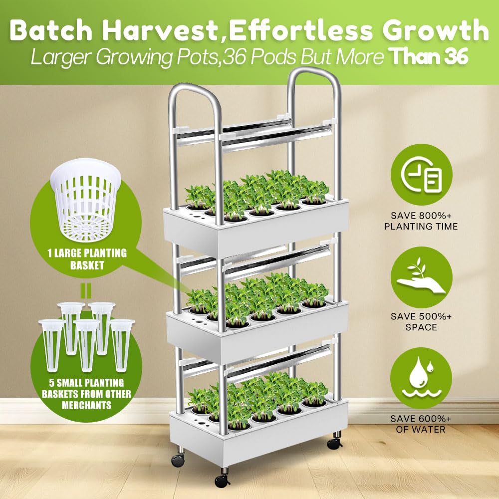 【Increased Yield】: Our hydroponics growing system features large-sized planting pots, allowing for the cultivation of more vegetables compared to smaller, market-standard options. Maximize the yield potential of your indoor garden.