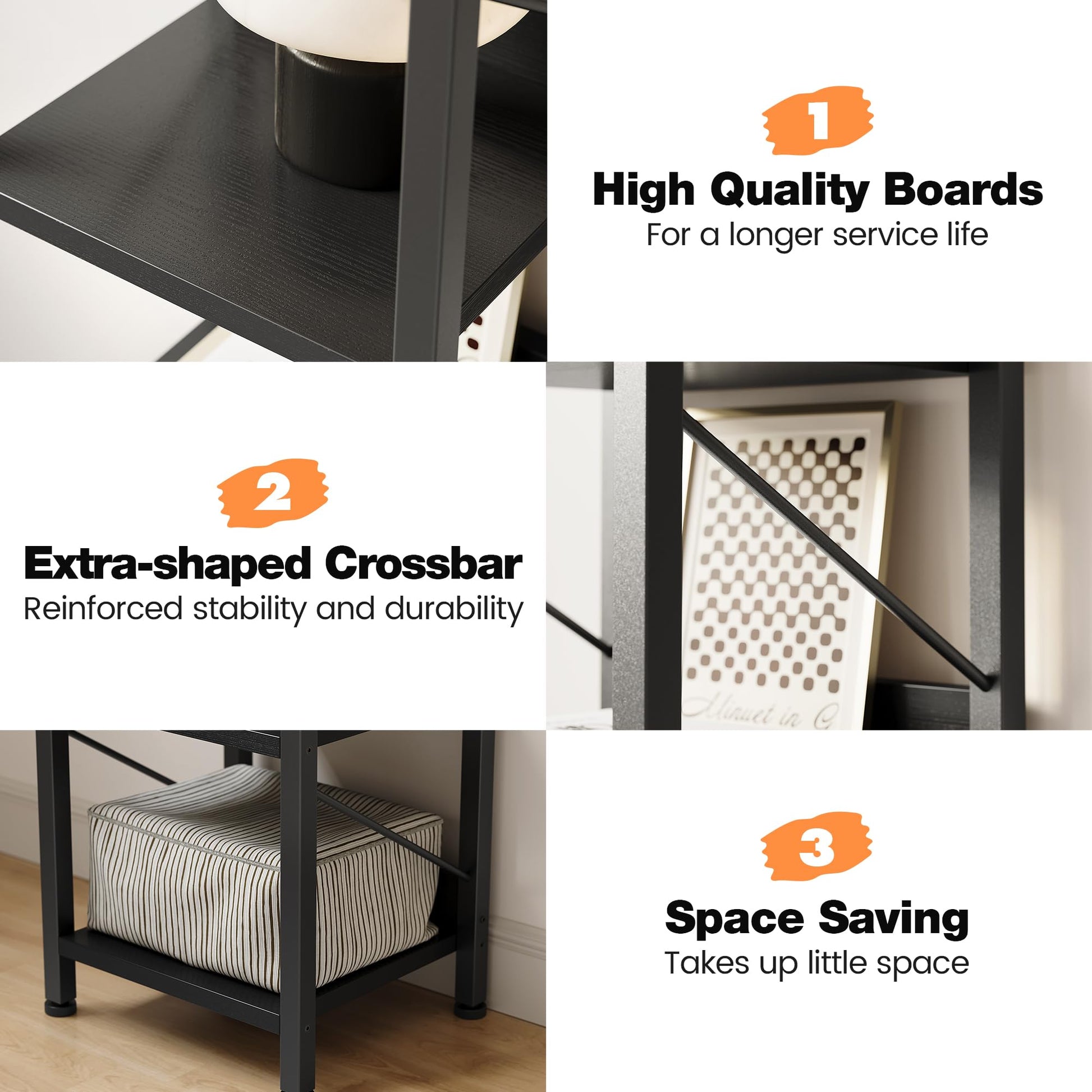 One Shelf, Many Uses: This rustic bookcase can be used as a bookshelf in the study room, a corner shelf in the bedroom, an open display rack of collections in your living room, or a storage shelf of spices in the kitchen, it also fits perfectly into the home office, bathroom, balcony and so on.