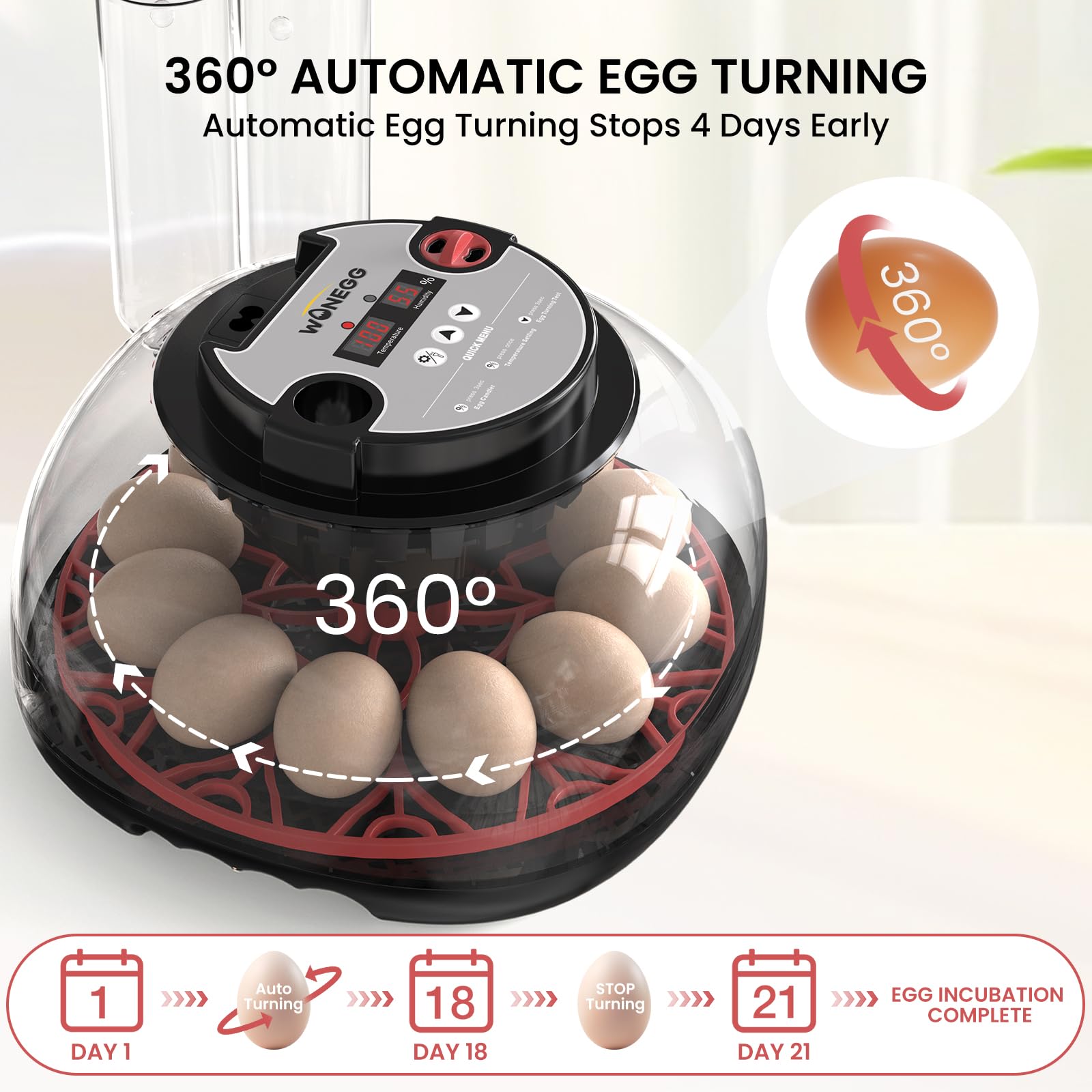 IKILEOGY 12 Egg Incubator for Hatching Chicken/Quail/Duck Eggs, Auto Turning, Digital Humidity/Temp Control, LED Candler, Auto Water Refill, 360° View (Smart Sensor)