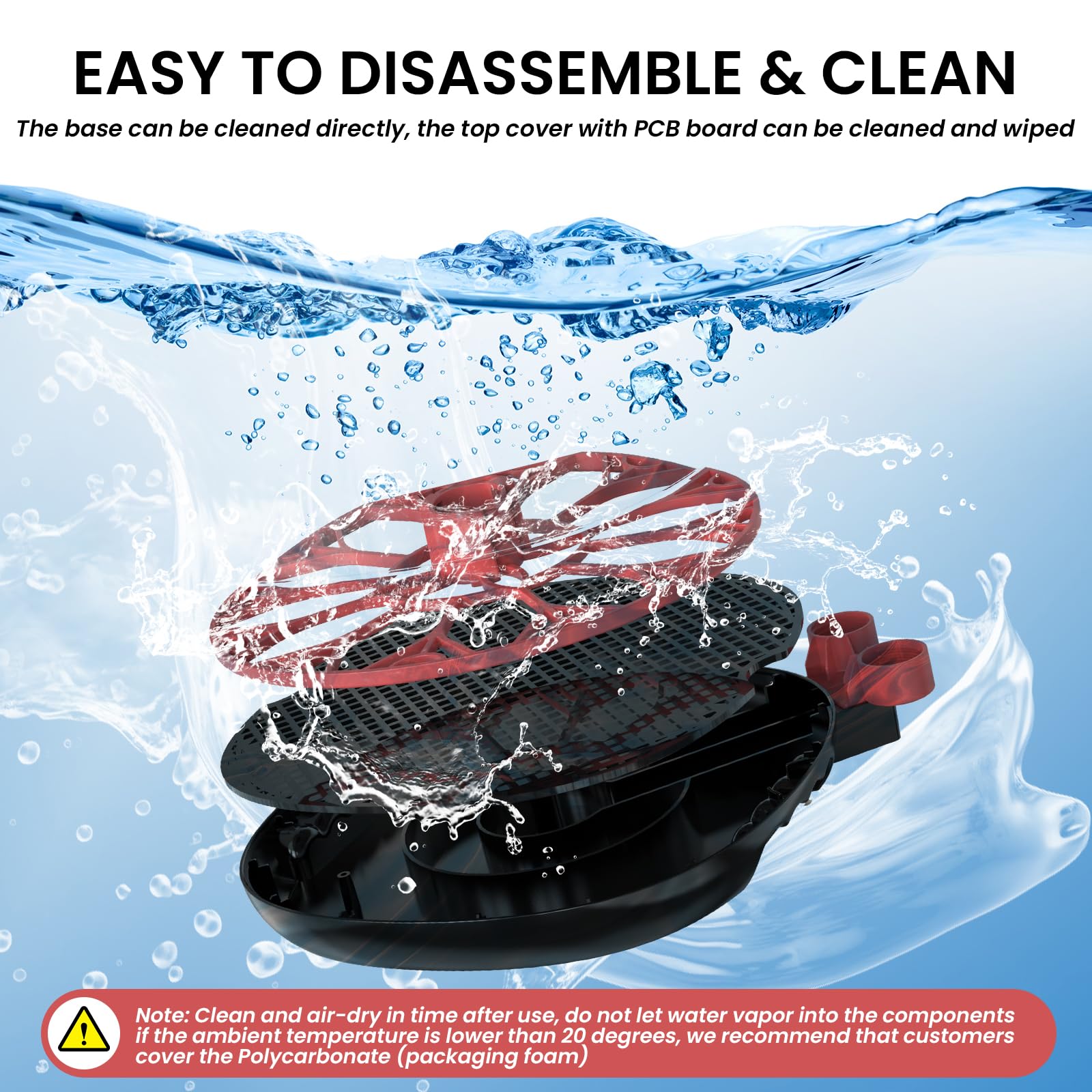 3.Automatic Egg Turning & Easy Monitoring: The 360° auto-turn function rotates eggs every 2 hours, mimicking natural incubation for even heat distribution. The built-in egg candler and transparent lid let you monitor progress without opening the incubator, ensuring higher hatch rates