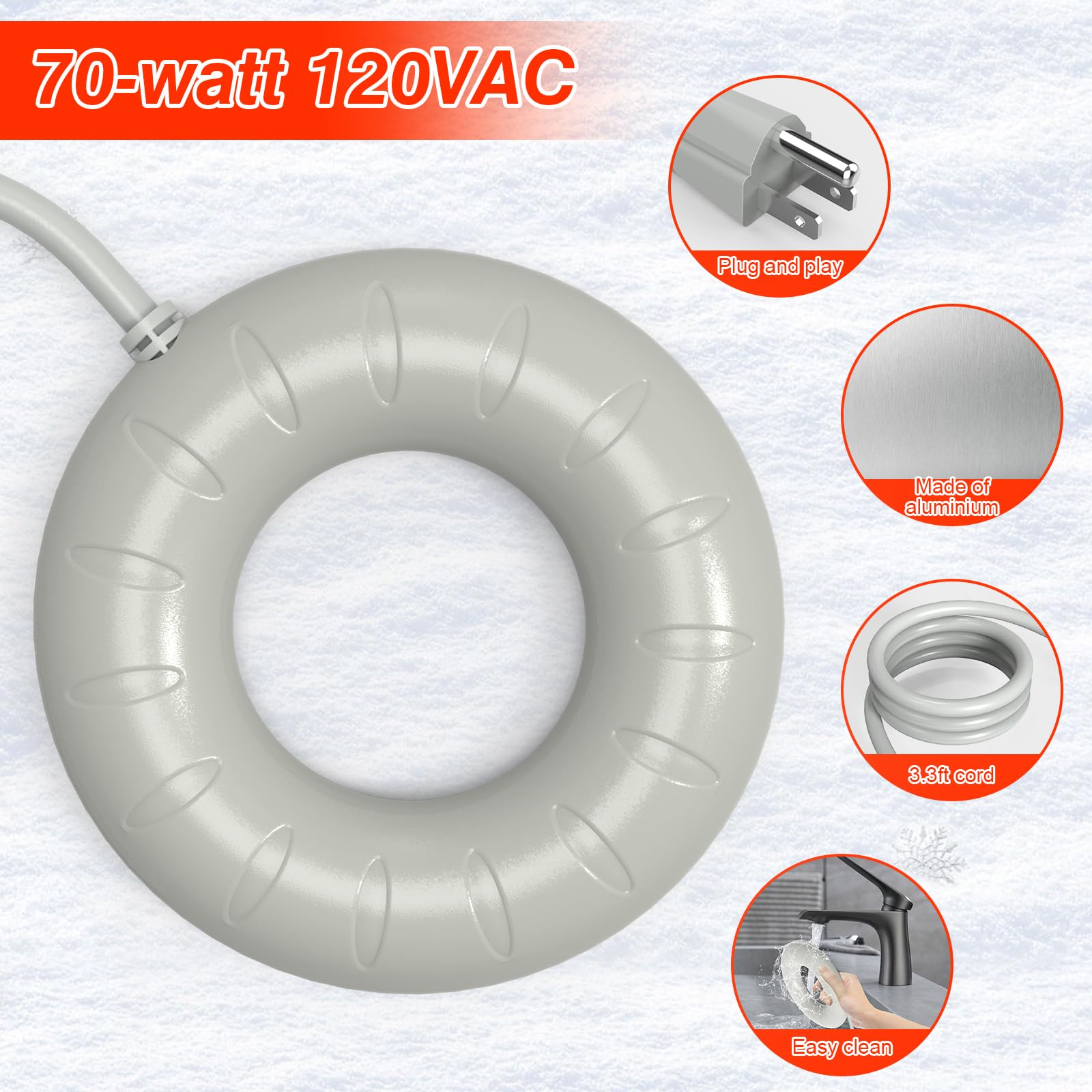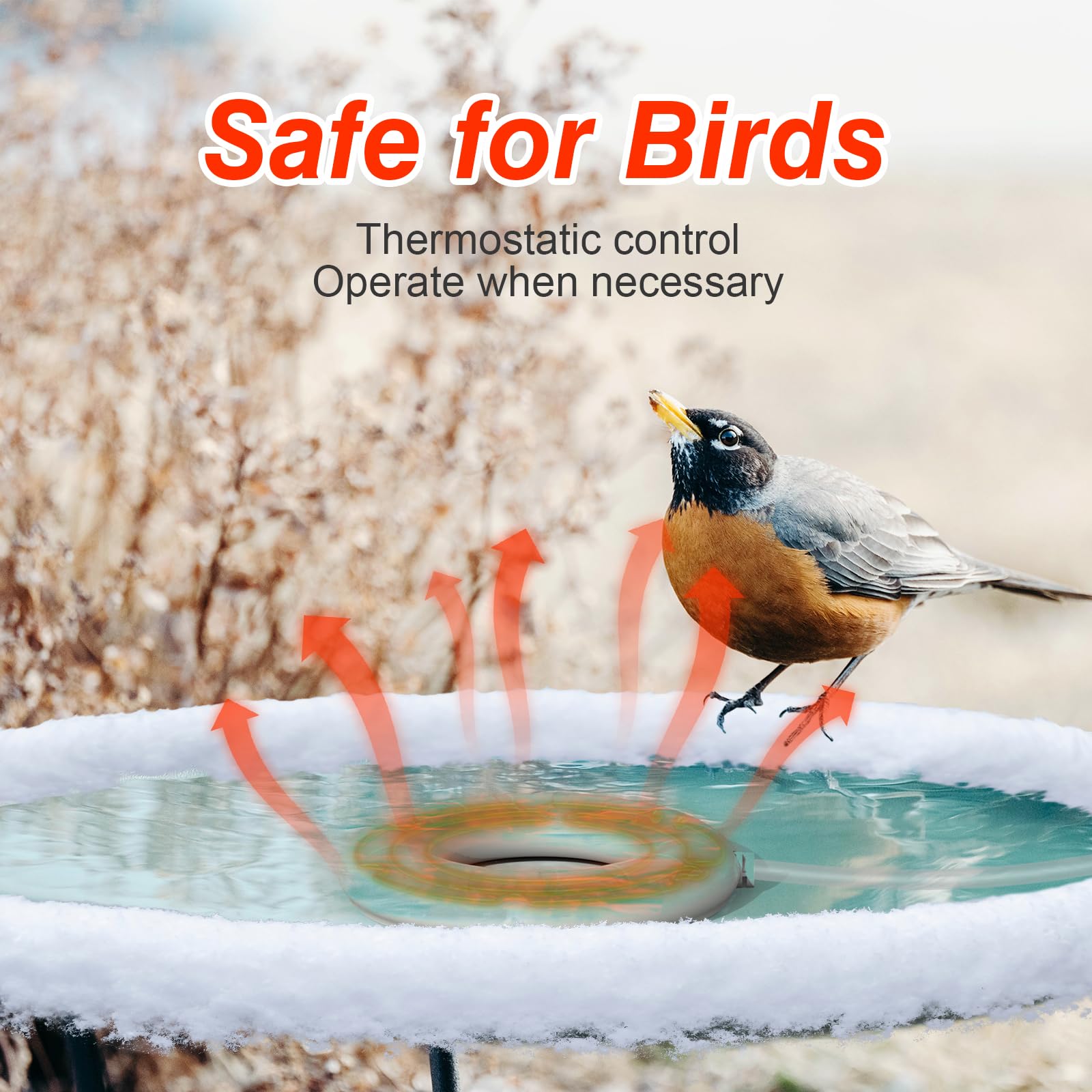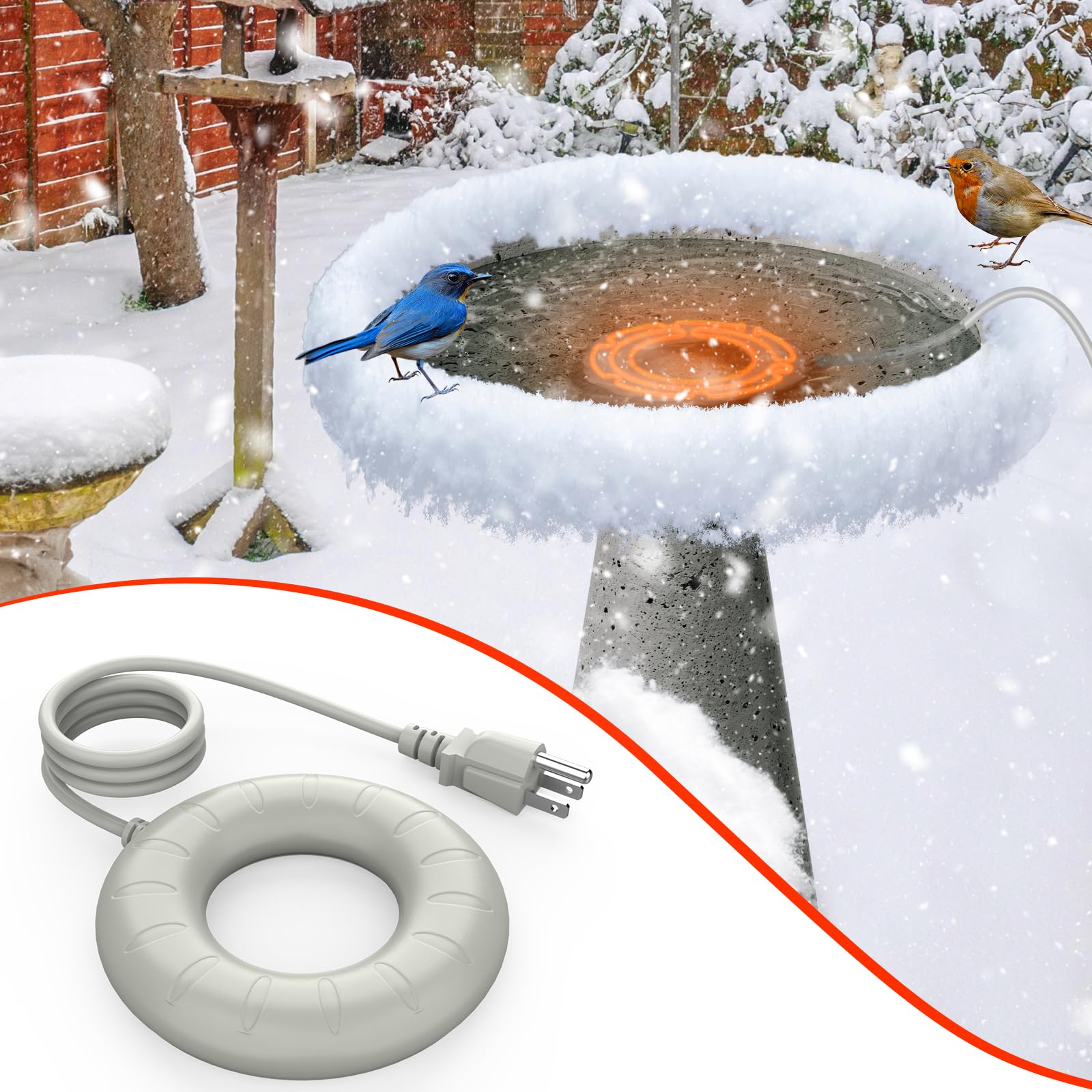 【70W Heater】This 70W heated bird bath has been improved and upgraded to heat up quickly and maintain a constant temperature. And with a 3.3ft cable cord, it's plug-and-play, which is very convenient and quick.With donut shape design, simple and beautiful, fashionable and lovely.