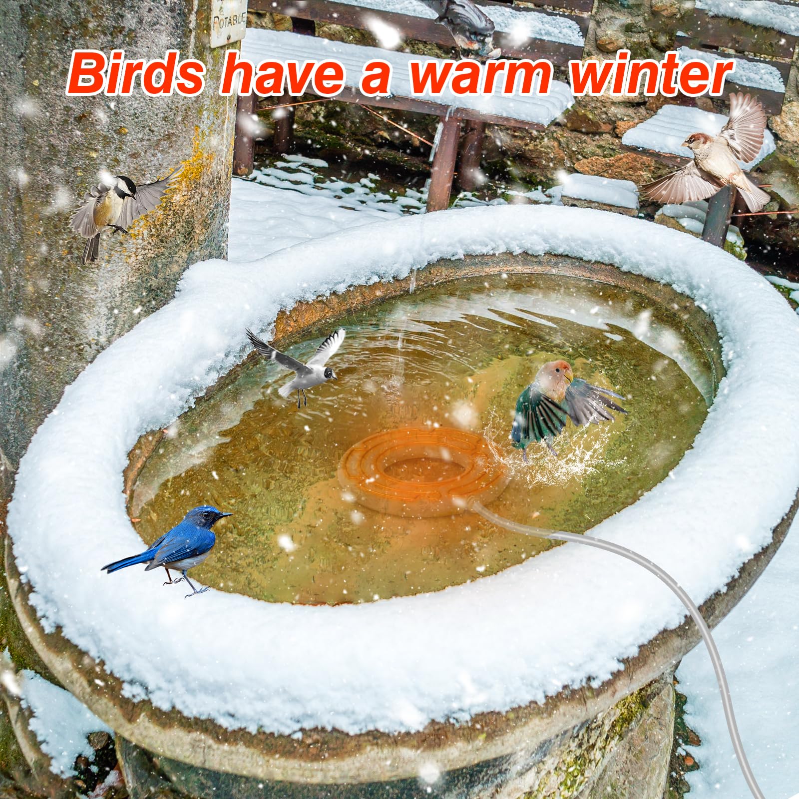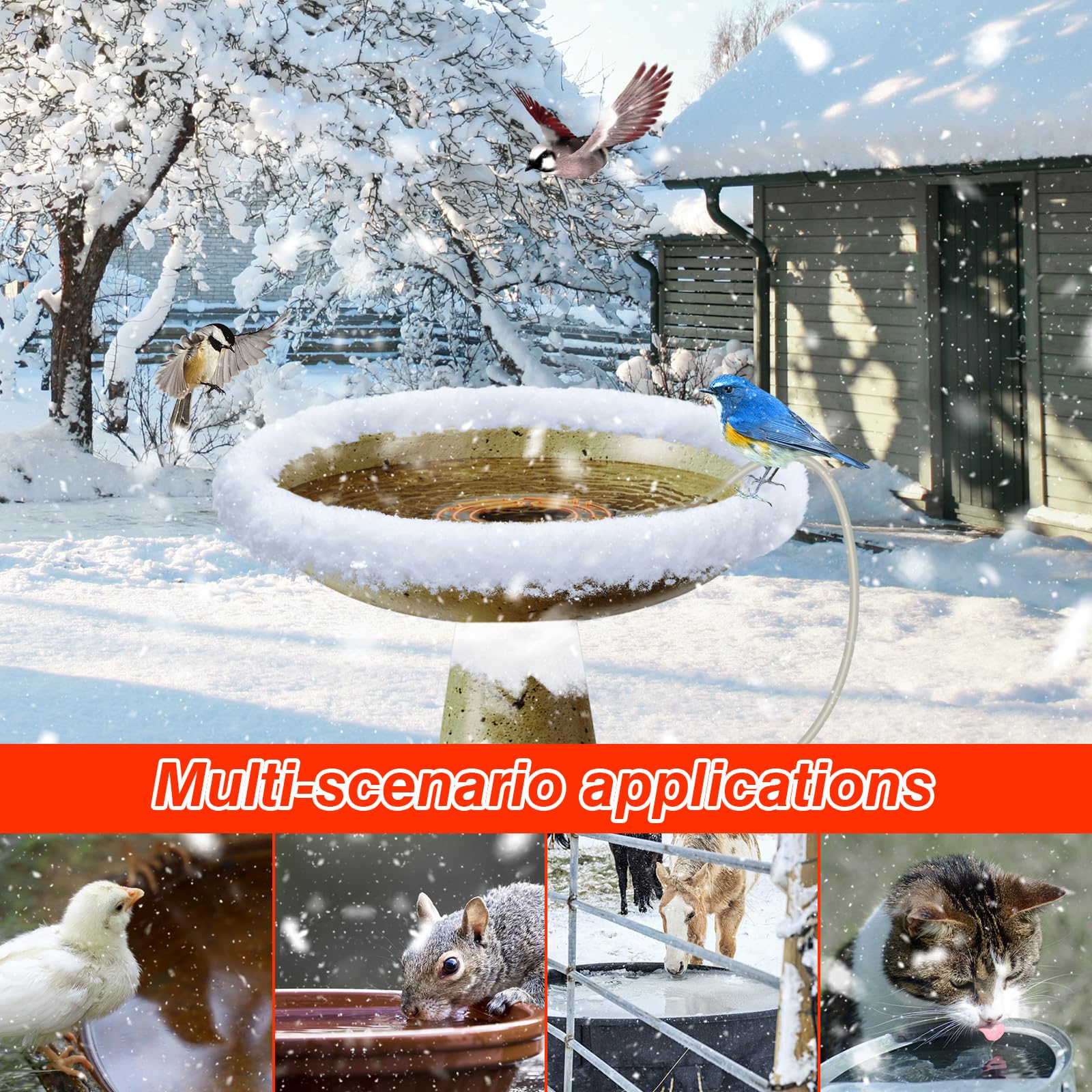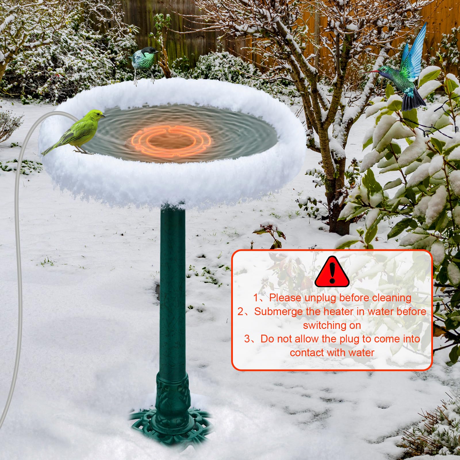 【Easy to Use】Just place the bird bath heater in the center of the bird bath, add some water, make sure the heater is completely covered with ice and water, then plug it in and start working, very quick and easy.Tip: Do not let the heater work without water.