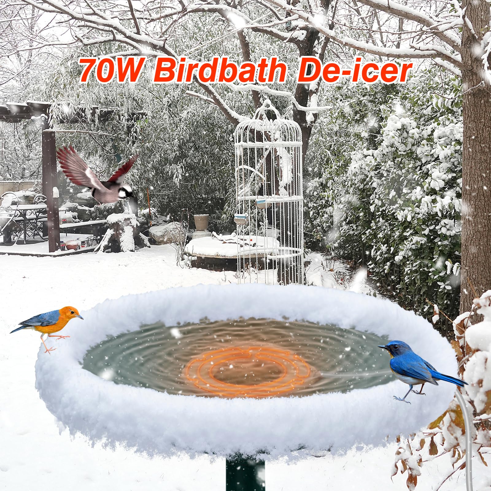 ikuchelife Bird Bath Heater for Outdoors in Winter, Pond De-icer 70W Birdbath Deicer Water Heater,Milky White Water Heater Thermostatically Controlled with Auto Shut Off Function for Garden Lawn