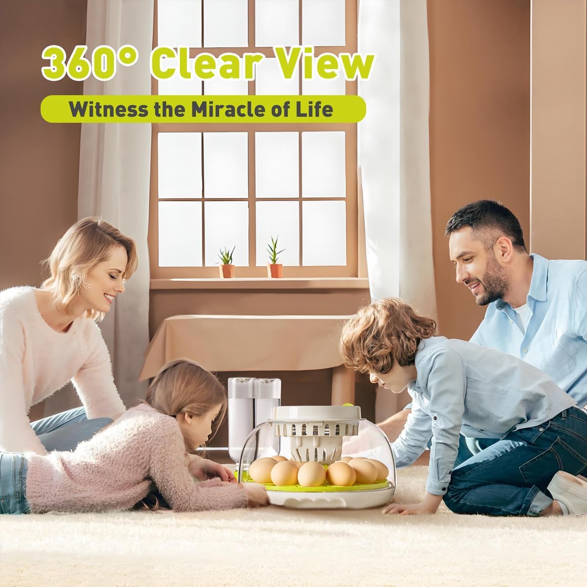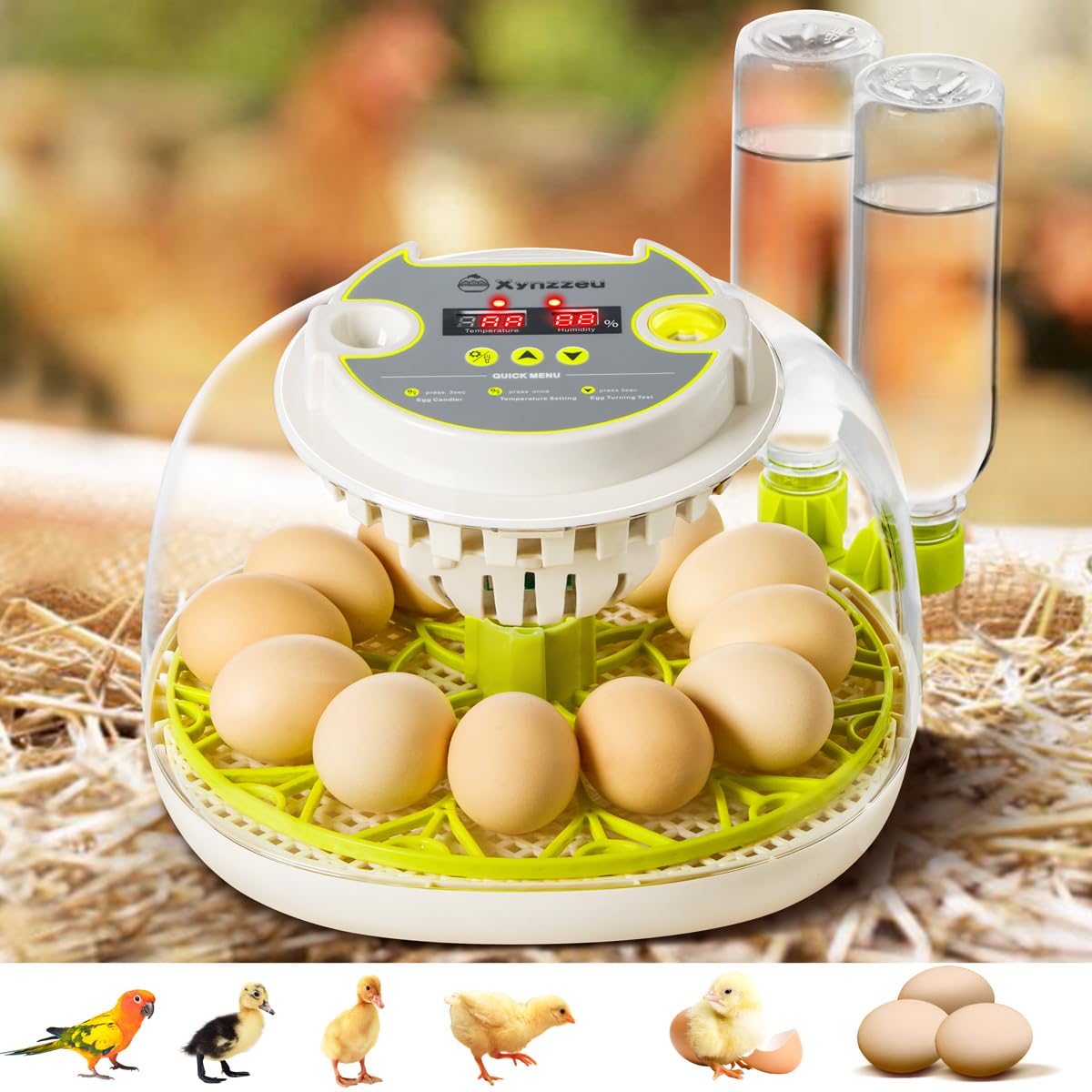 Incubators for Hatching Eggs, 12 Egg Incubator with Automatic Egg Turning and Humidity Control, Incubator for Chicken/Quail/Duck Eggs with Temperature Control/LED Egg Candler, 360 Degree View