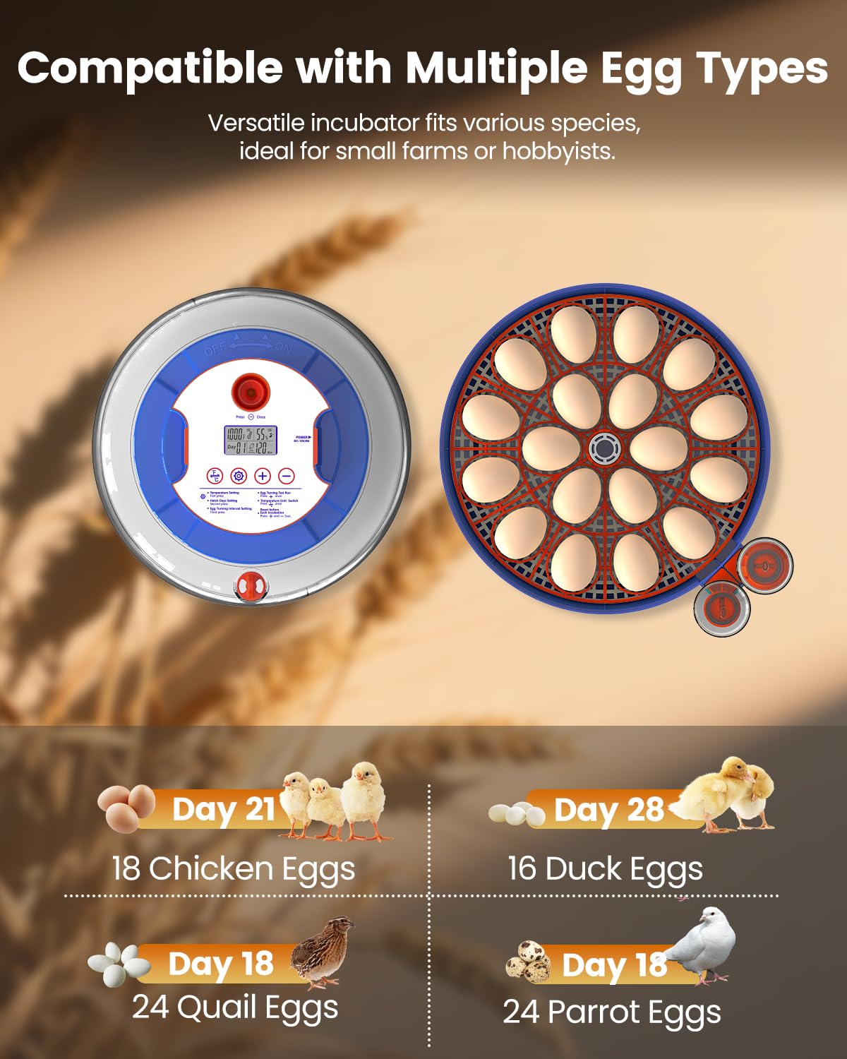 Incubators for Hatching Eggs, 18 Eggs Incubators with Egg Candler, Automatic Egg Turner, Temperature & Humidity Control, Full Viewing for Chicken, Duck, Quail, Goose, Parrot and Pigeon