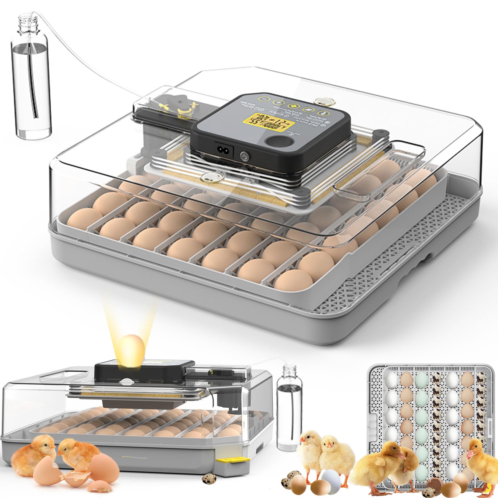 Incubators for Hatching Eggs 48 Egg Incubator with Automatic Turning and Humidity Control for Chicken Duck, Egg Candler for Chicken Eggs Goose Incubator Duck Quail Chick for Hatching Poultry (Grey)