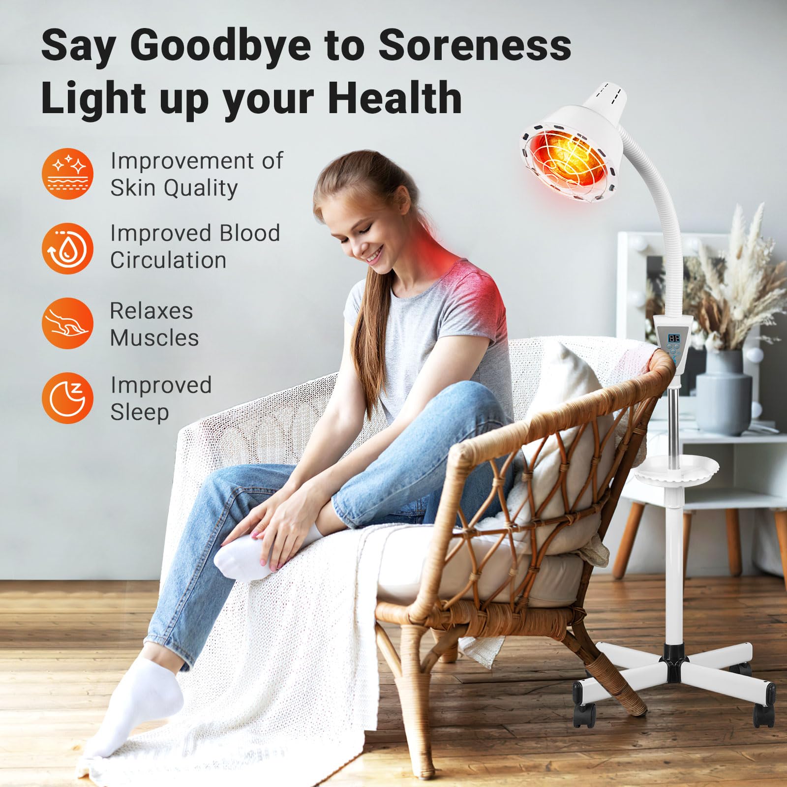 【Infrarde Heat Lamp for Body】:Infrared lamp therapy is suitable for athletes, and pain patients. 660nm red light increases cellular activity and 850nm NIR light reaches deeper into the body tissues.The infrared energy of the infrared therapy lamp penetrates deep into the skin, directly causing muscle heat effects, accelerating blood circulation, relieving pain, and promoting muscle relaxation.