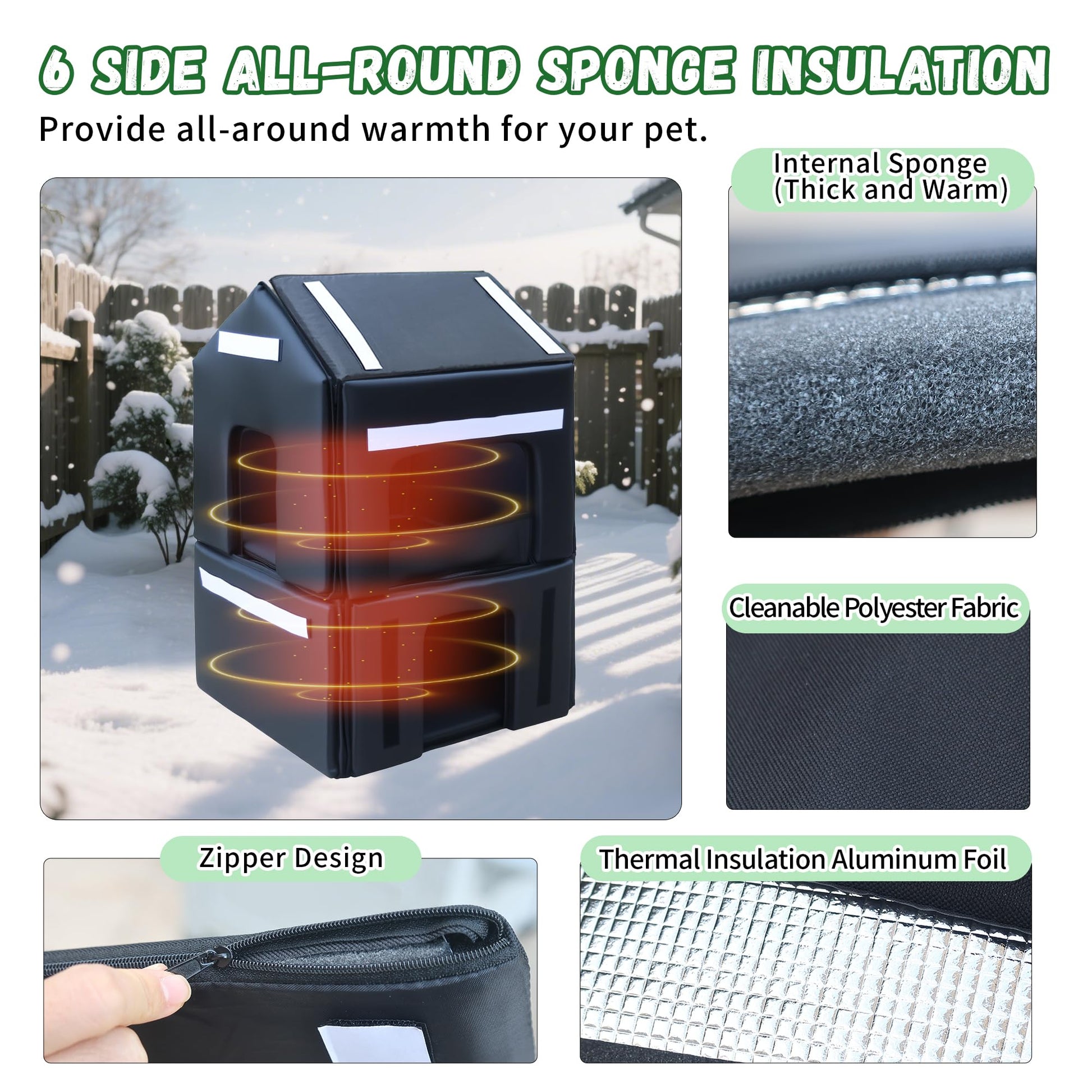 【Upgraded Insulated Lining】This cat house features a unique upgraded insulated lining made from high-density foam and PVC-coated fabric, providing a warm sanctuary for your beloved cat. The lining is removable and machine washable.