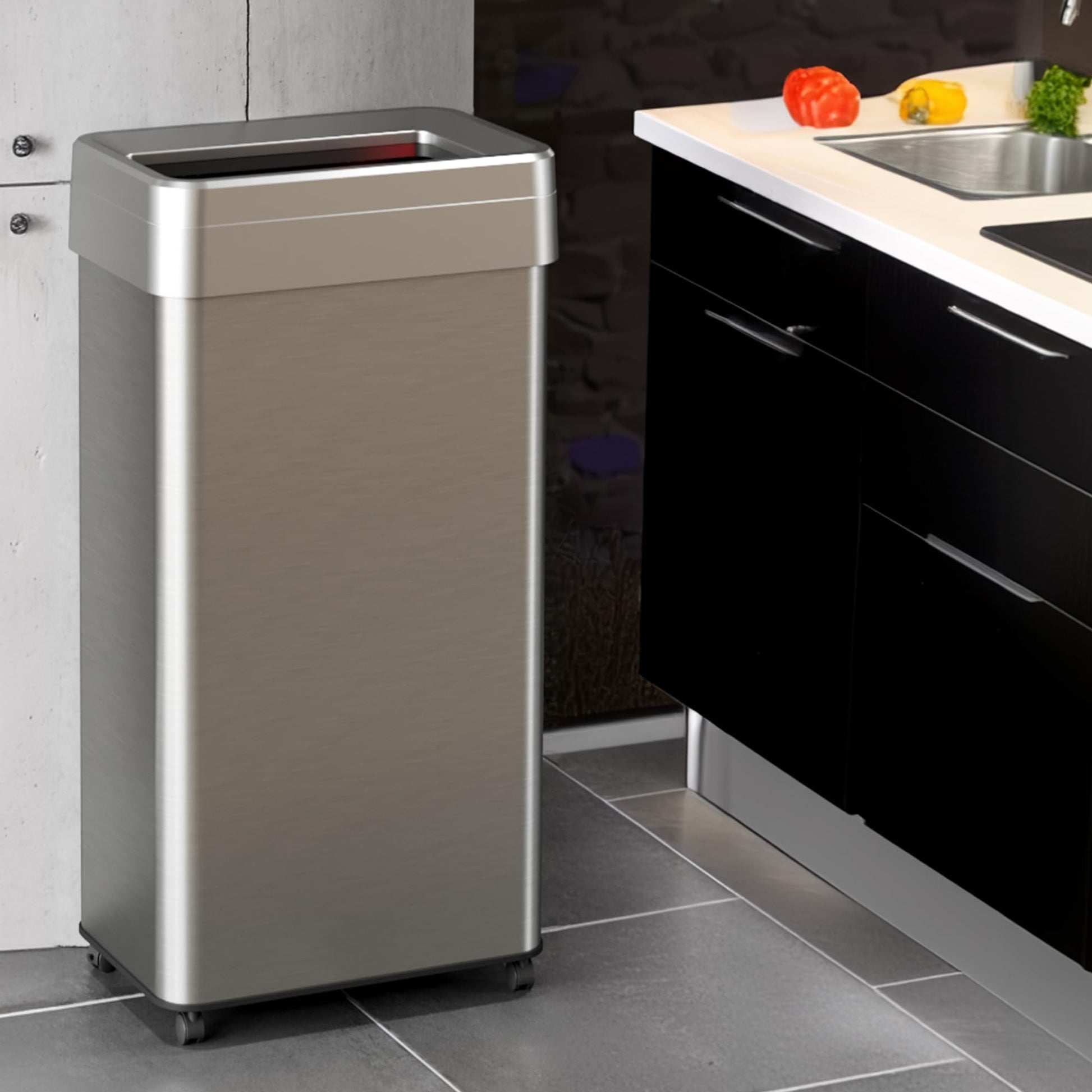 iTouchless 21 Gallon Open Top Kitchen Trash Can Recycling Bin with Wheels and Double Odor Filters Rectangular Commercial Stainless Steel 80 Liter Trashcan Home Office Work Bedroom Livingroom Garage