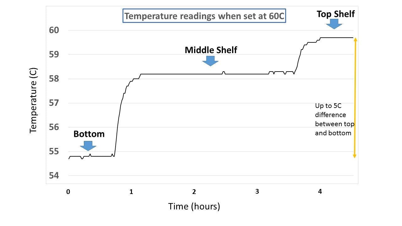 PRECISE TEMPERATURE CONTROL: from 2°C to +60°C in increments of 1°C. If kept on the same shelf, temperature fluctuations of 0.5°C