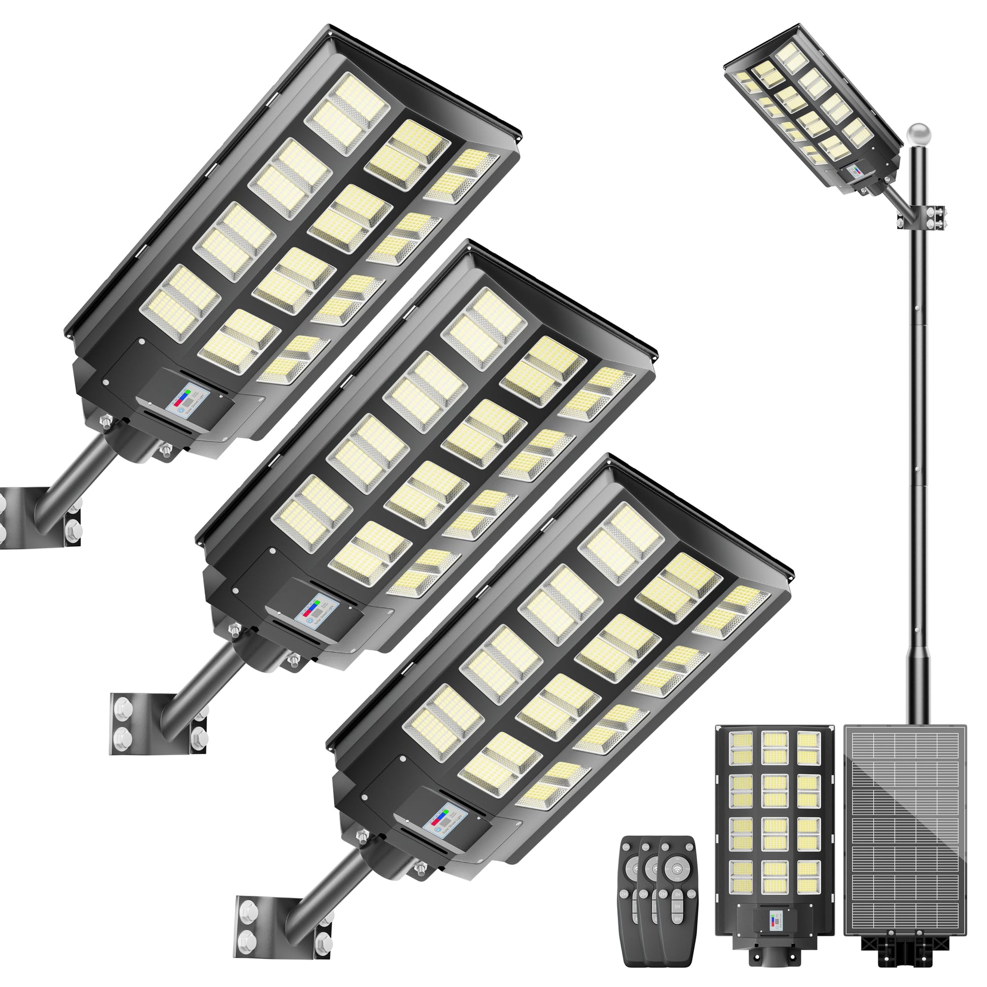 Jadisi 3-Pack 8000W Solar Street Light-240000LM IP67 Waterproof, Dusk to Dawn, Solar Street Lights Outdoor, with Motion Sensor Remote Control,Wide Angle Lamp for Parking lot Lights