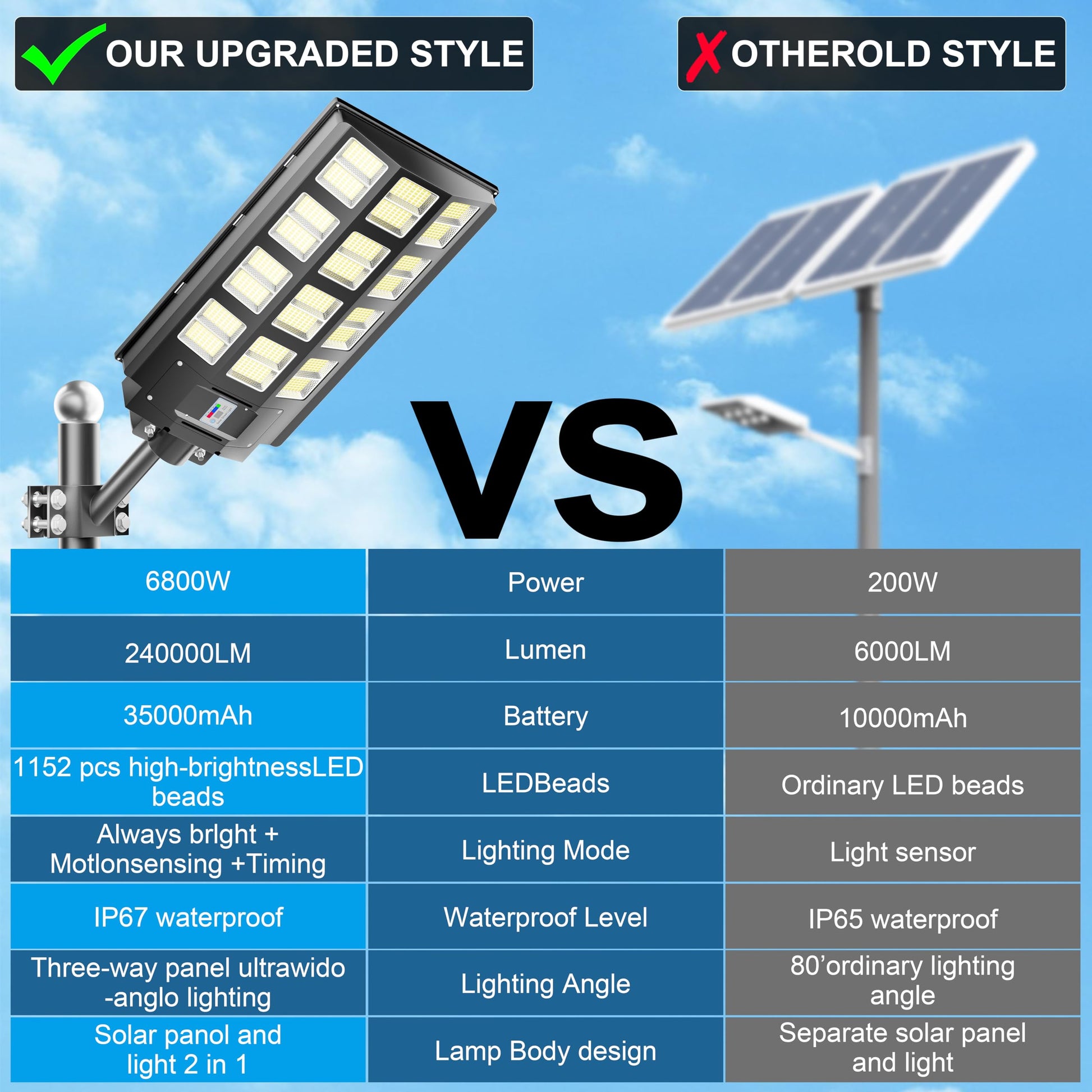 đ”ă0 Electricity Costsă The Jadisi 8000W Solar Street Light is your cost-effective and eco-friendly lighting solution, now with an astounding 300000 lumens of brilliant illumination. Powered entirely by solar energy, it eliminates the need for electricity, saving you money on utility bills. Enjoy bright illumination without worrying about rising energy costs.