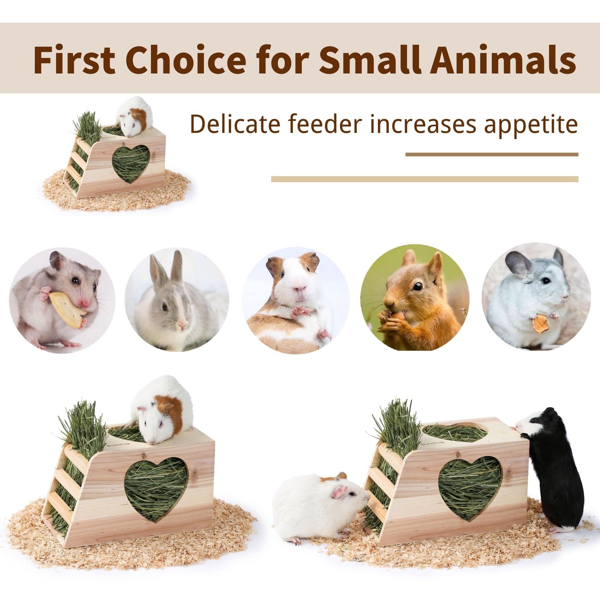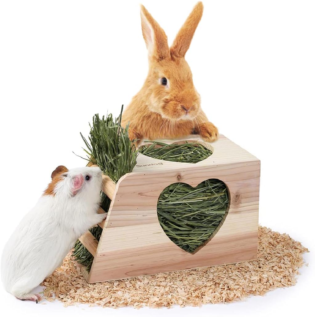 đ°ăEnough Capacity for One DayăThis wooden feeder can hold a good amount of hay, enough for a whole day for guinea pigs or baby rabbits(Pets weighing over 4 pounds need to be refilled twice).Ensure pets can eat fresh grass every day,No food wasted