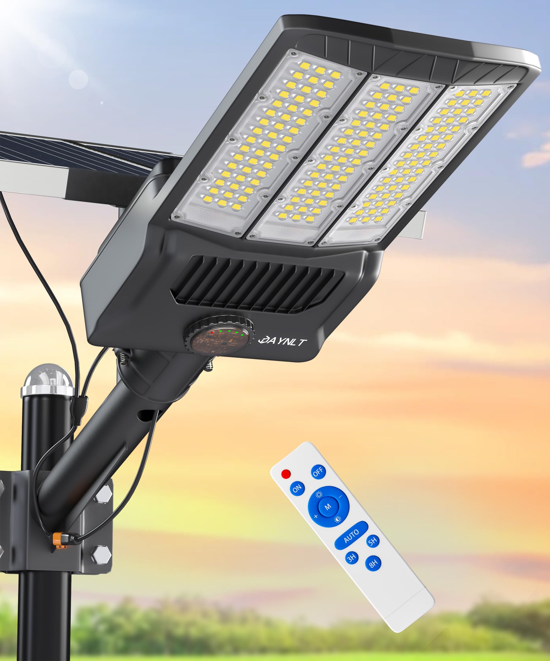 【HIGH LUMEN LED BEADS】This bright solar street light uses high brigh 144 pcs brightest 5054 type LED beads. Led beads build-in large chips and large battery capacity, can produce up to 800000LM high brightness output . LED beads also adopt convex lenses technology, make the light uniform, brighter and farther. solar powered Street lights with 6500k color temperature,it is no yellow and provided clear and bright vision.