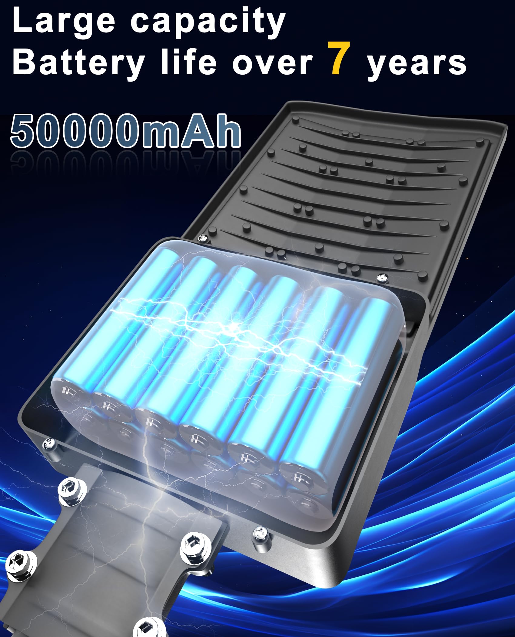 【IP67 WATERPROOF AND ALUMINUM MATERIAL】The solar security lights adopts high-quality aluminum material, eaturing impact resistance and heat and cold resistance, and features a protective screen covering the LEDs.This ensures effective isolation from rainwater, even during rainy days or harsh weather conditions. This solar parking lot lights commercial are safe & sturdy. Rainy days can be work, and working about 50 hours in dim mode.