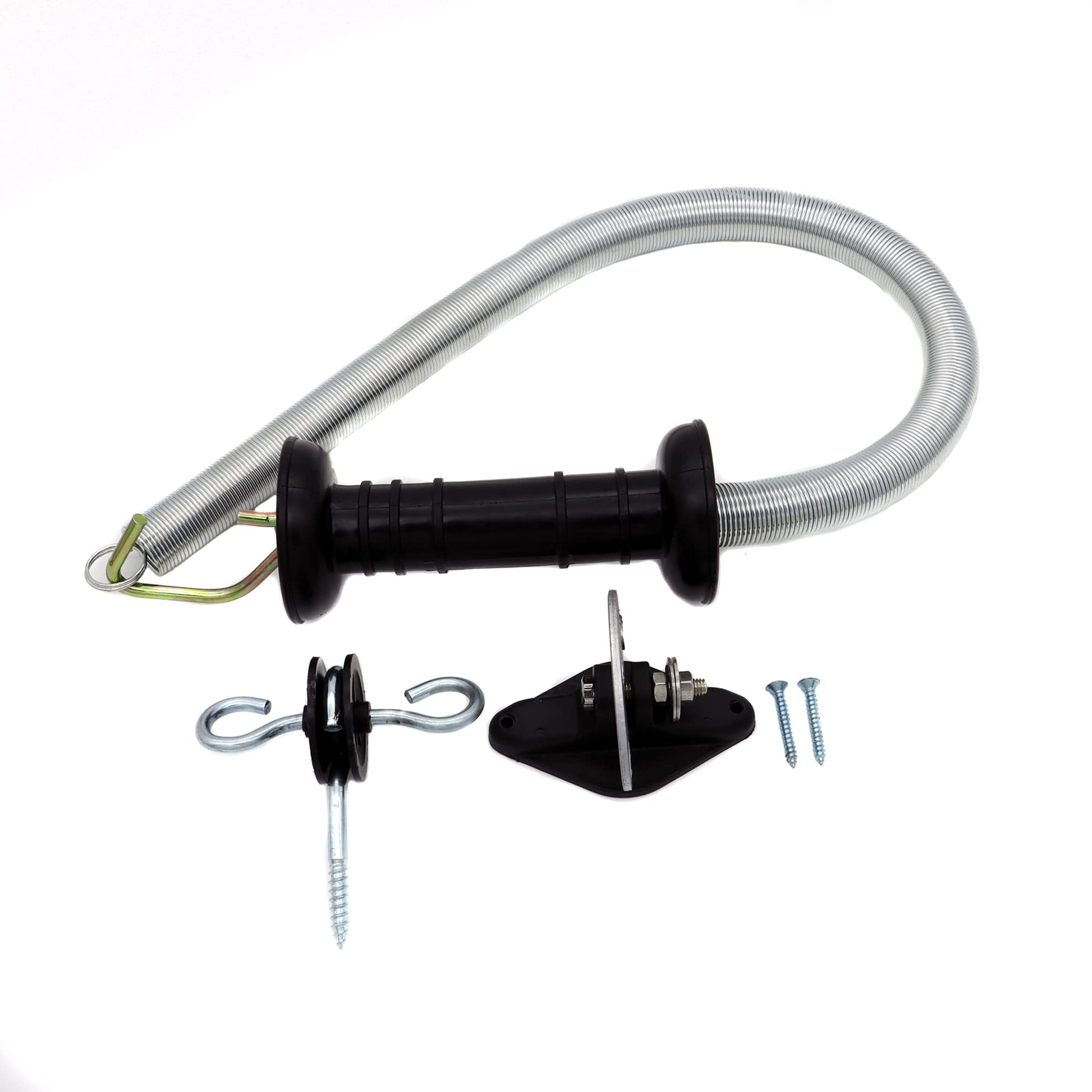 JBT Electric Fence Spring Gate Handles Kit, Electric Fence Handle Set with Anchors, 16-Feet Tension Spring (Black)