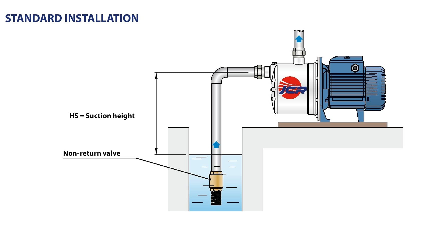 JCRm2A Pedrollo Self-priming Water Pump 220V 60 Hz 1.5 HP 1" x 1", Head up to 155 ft. Flow Rate up to 18 GPM