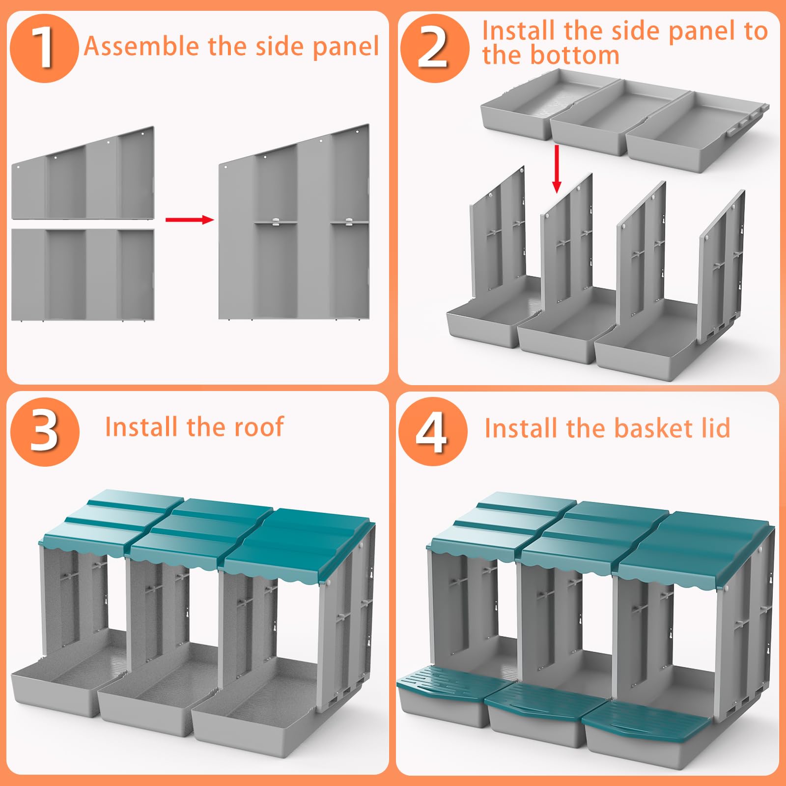 【Easy to Clean】Plastic material is not easy to rust, Just rinse with water. Equipped with small holes in the bottom, the chicken egg laying box prevents water accumulation and allows residue to fall through the mesh tray.