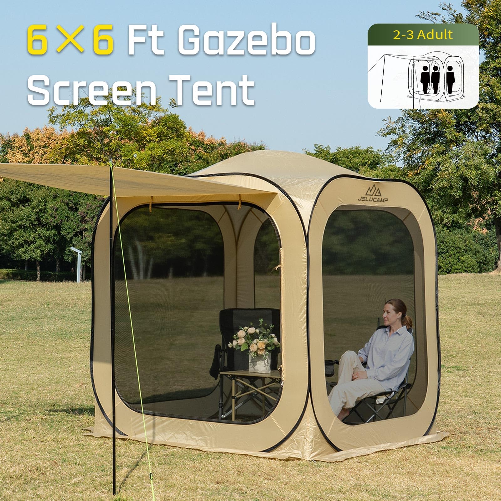 JELUCAMP 6x6 FT Pop Up Screen House Tent - Instant Screened Gazebo Canopy with Mosquito Net, Portable Backyard Tent for 4-6 People, Easy Setup Patio Shelter for Camping, BBQ, Sports & Outdoor