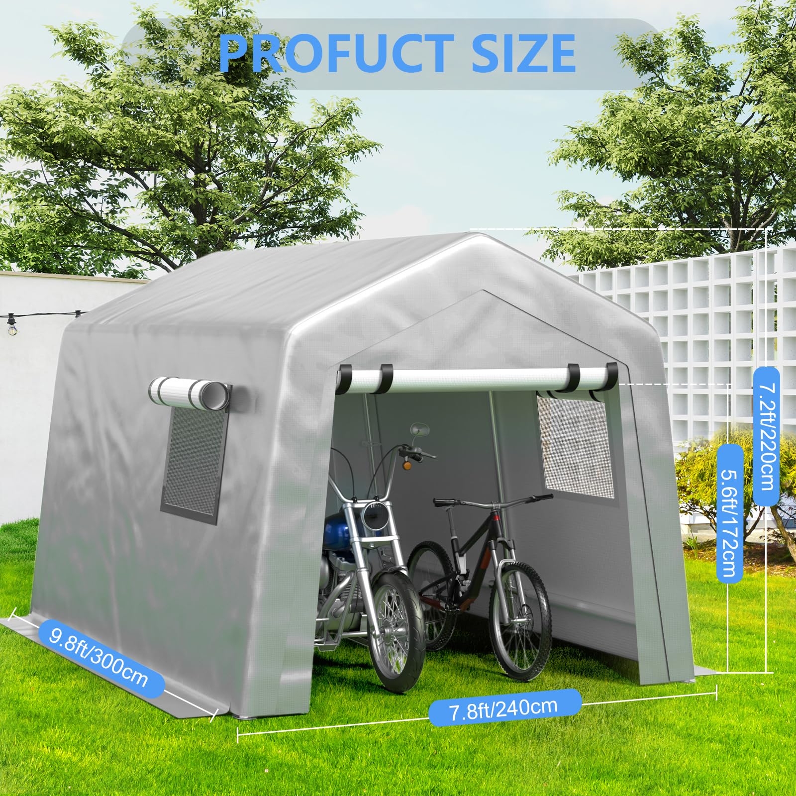 ADAPTABLE SIZE FOR DIVERSE USES-Our carport comes in an 8x10ft option to cater to various storage needs. Whether you require pretection for motorcycles or other vehicles, this intermediate-sized shelter is ideal for rural households seeking versatile storage solutions