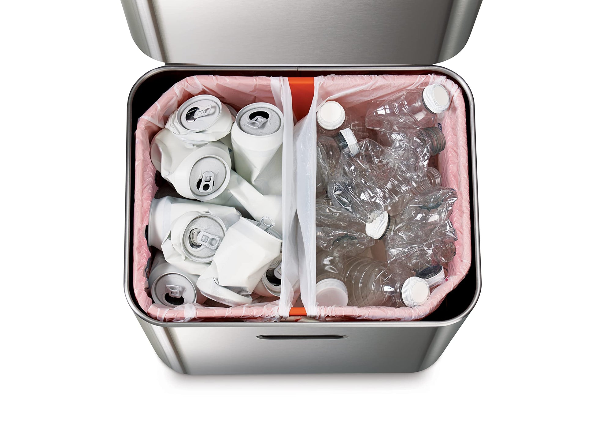 Joseph Joseph Totem Max 60 Liter/15.85 Gallon Waste Separation and Recycling Kitchen Trash Can with Odor Filter and Removable Food Waste Caddy, Stainless Steel