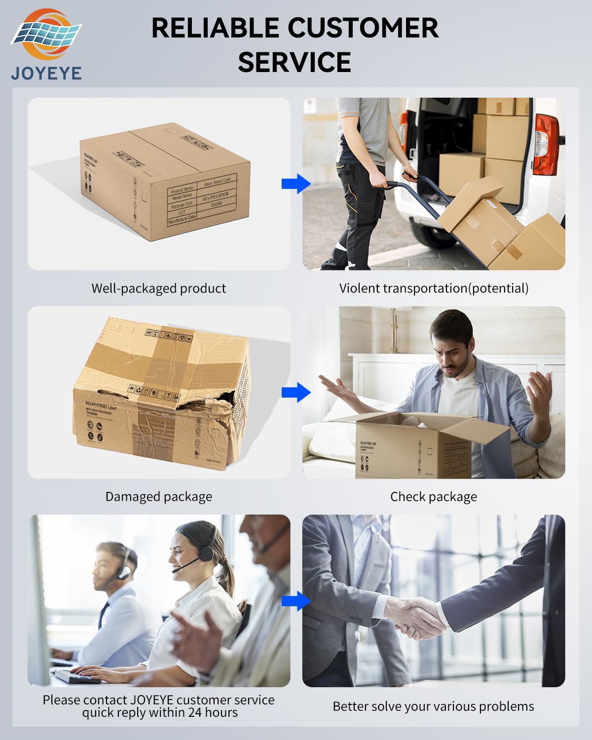 2 Year Support: Customer satisfaction is our priority. We provide free 2-year after-sales service and technical support for our solar street lights. If you have any concerns or encounter any issues, please contact us.