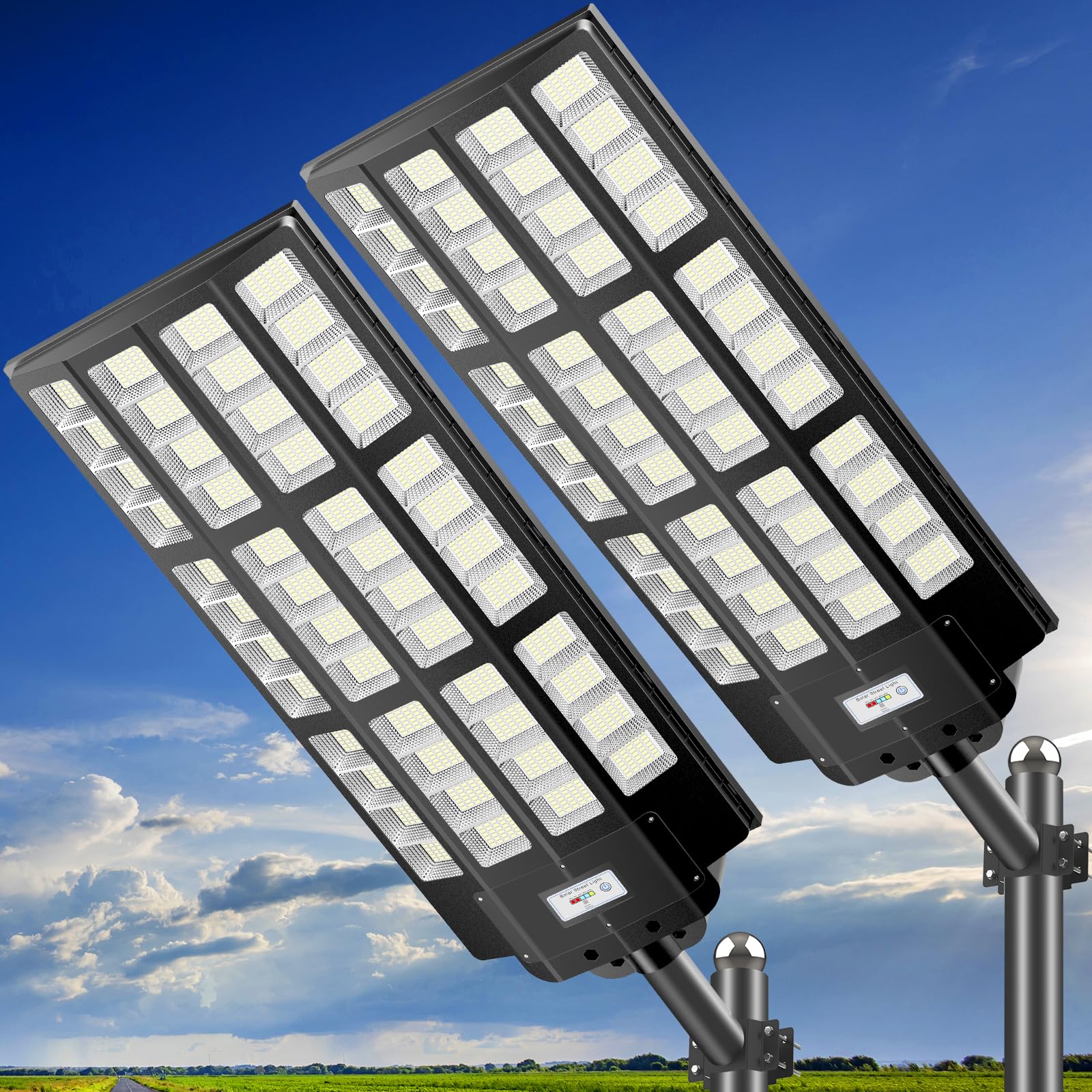 JOYEYE 10000W Solar Street Lights Outdoor: Commercial Solar Parking Lot Lights with Motion Sensor and Remote Control, IP66 Waterproof, Wide Angle Dusk to Dawn Outdoor Lighting, Large Dimension, 2 Pack